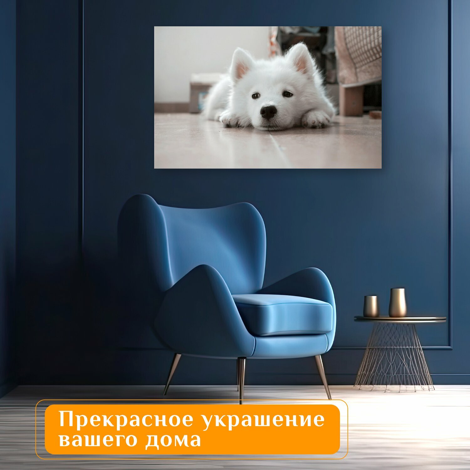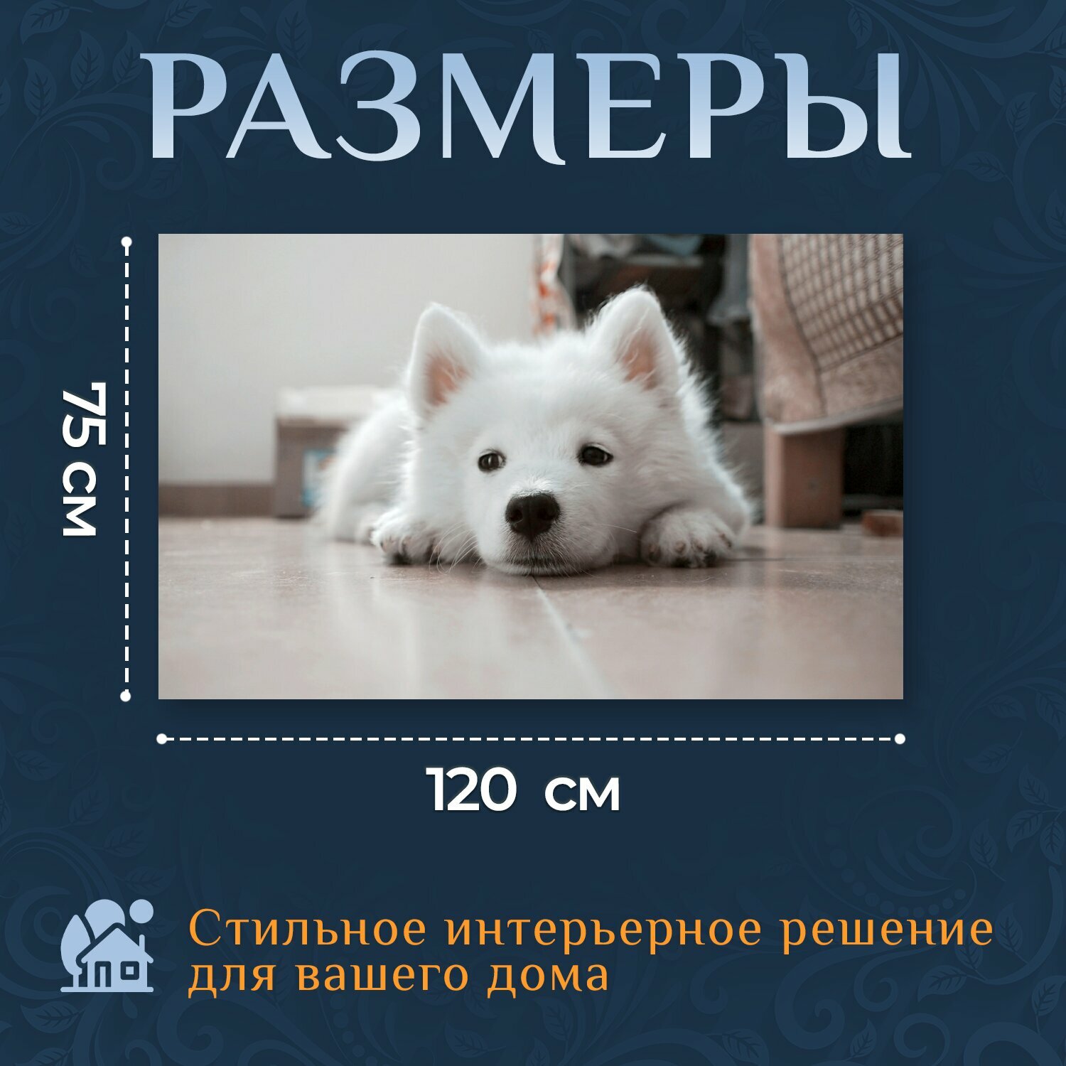 Отзывы на Картина на холсте "Собака, щенок, белый" на подрамнике 120х75 см. для интерьера