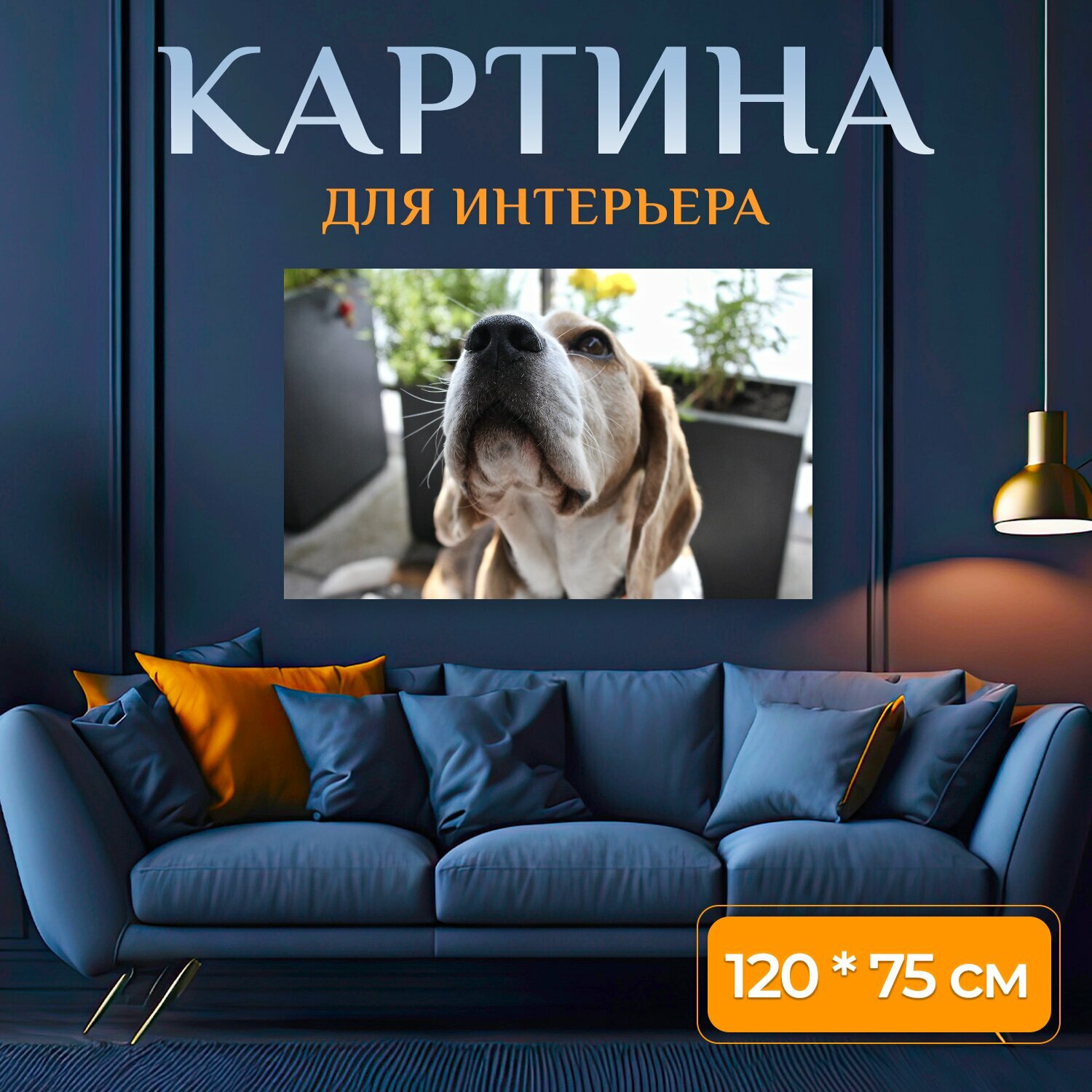 10 цен на Картина на холсте "Гончая, собака, симпатичные" на подрамнике 120х75 см. для интерьера