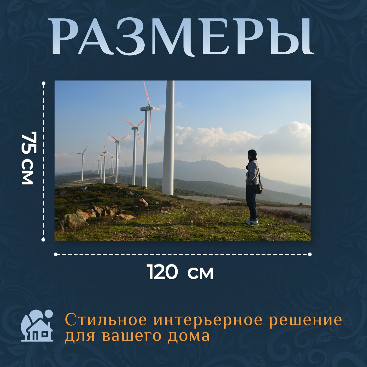 Картина на холсте "Природа, ветер, турбина" на подрамнике 120х75 см. для интерьера информация: