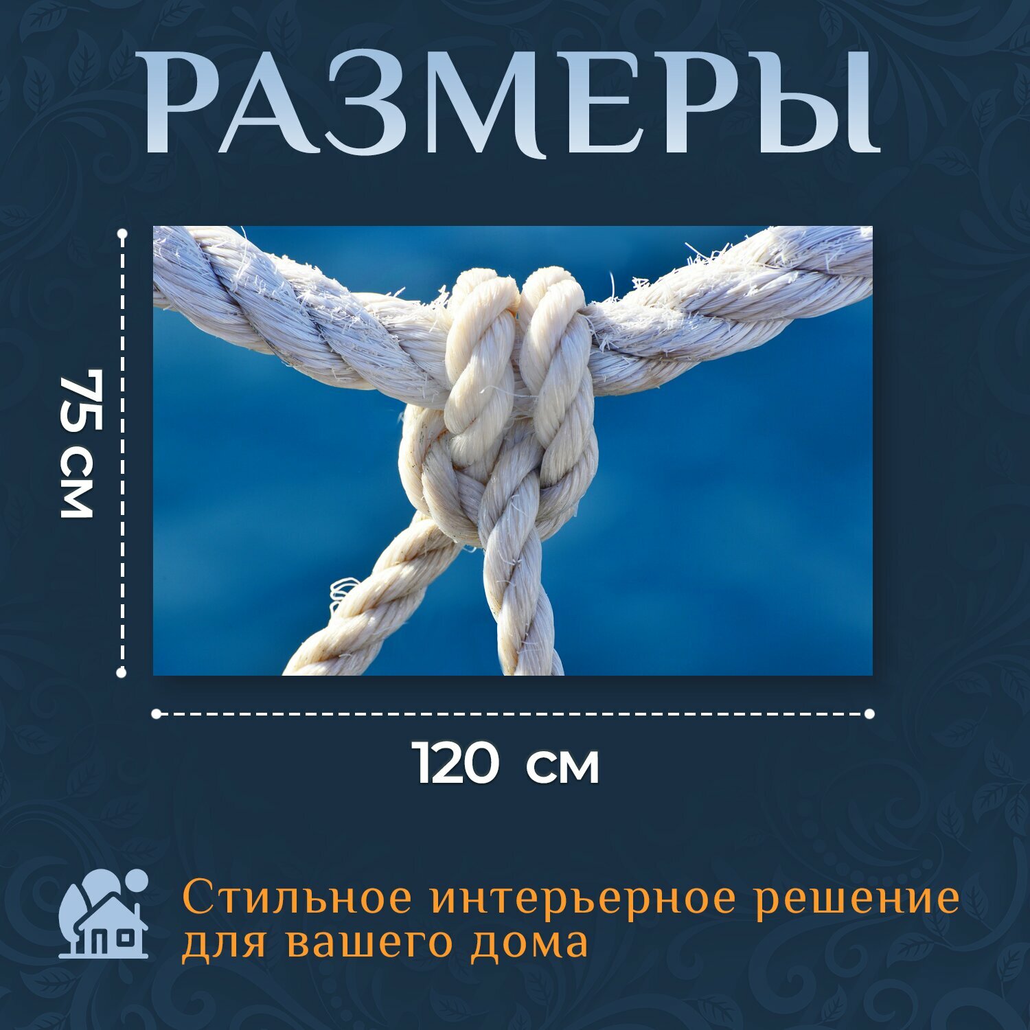 Картина на холсте "Морской узел, веревка, связь" на подрамнике 120х75 см. для интерьера информация: