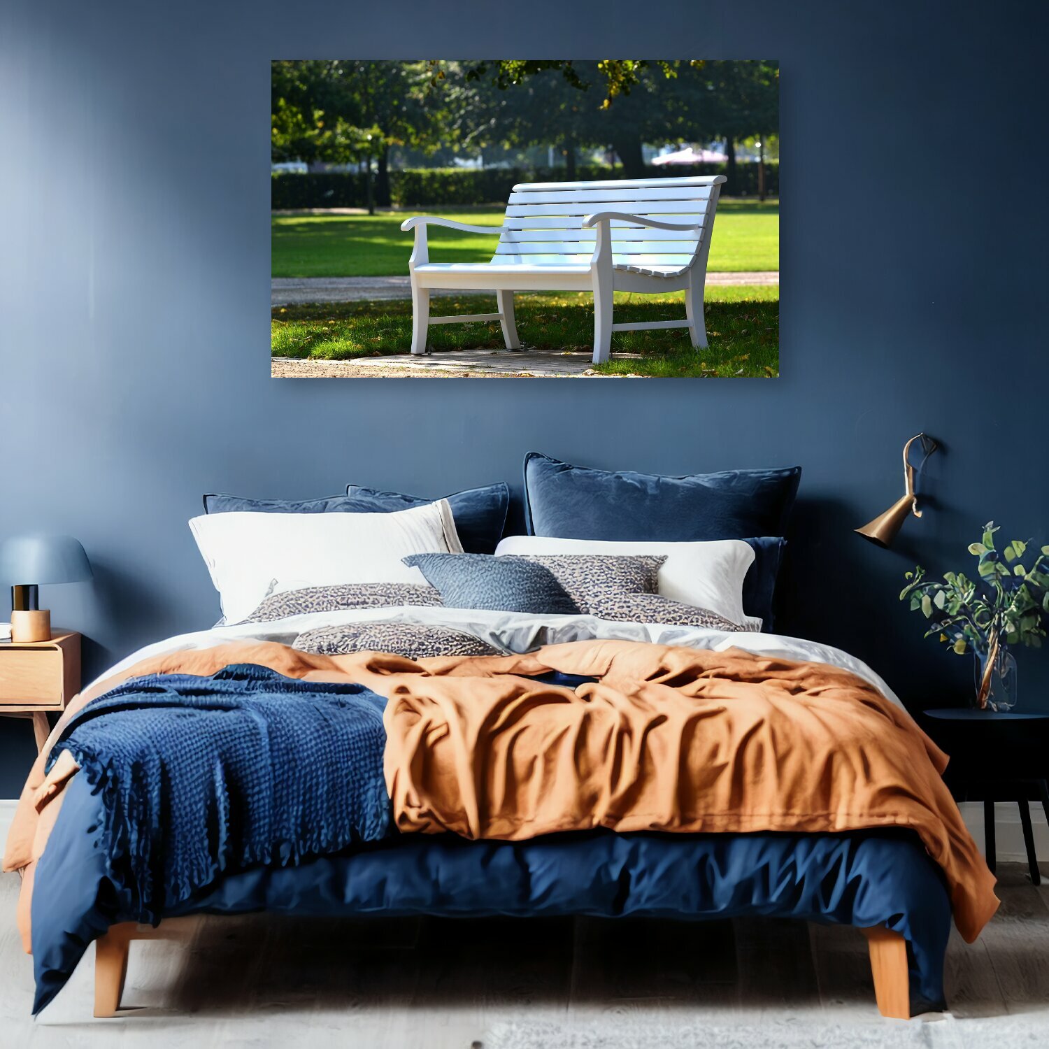 10 цен на Картина на холсте "Парк, банк, сидеть" на подрамнике 120х75 см. для интерьера