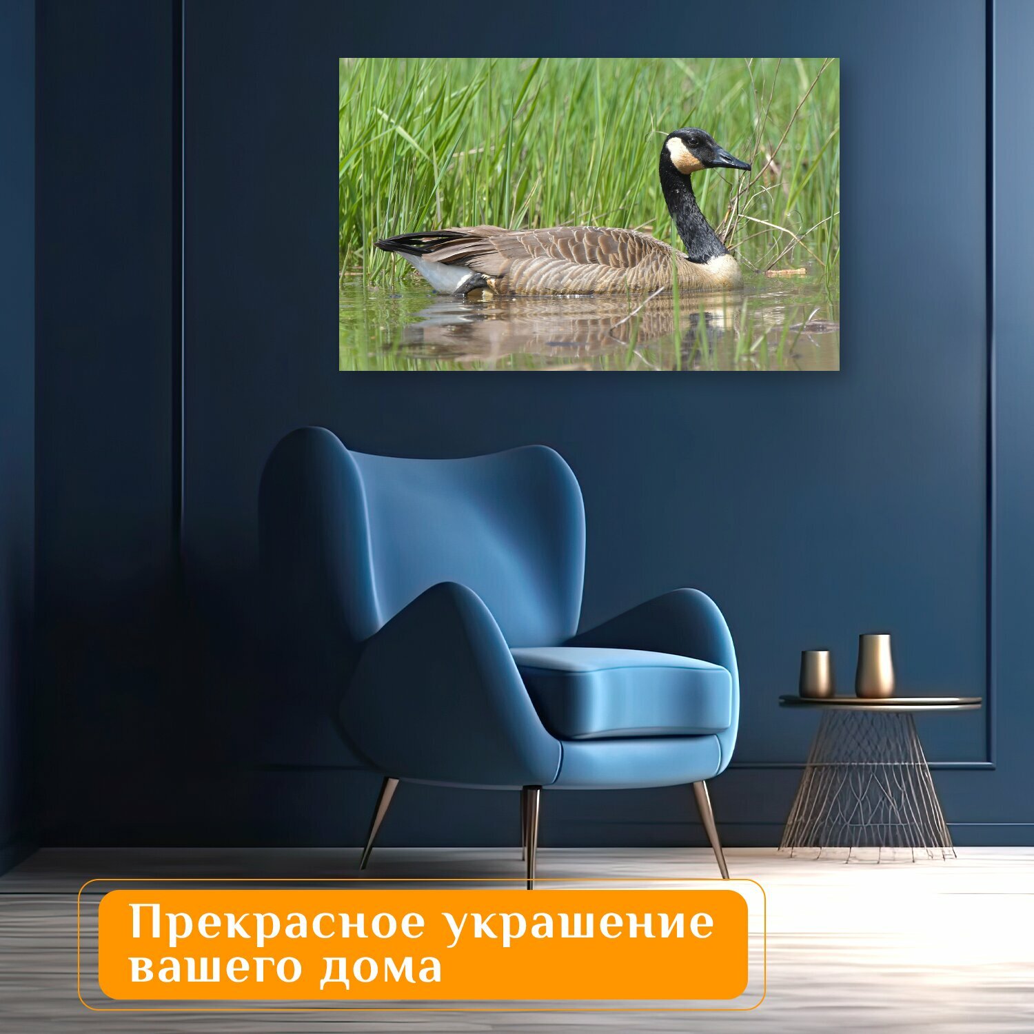 10 цен на Картина на холсте "Канадский гусь, птица, болото" на подрамнике 120х75 см. для интерьера