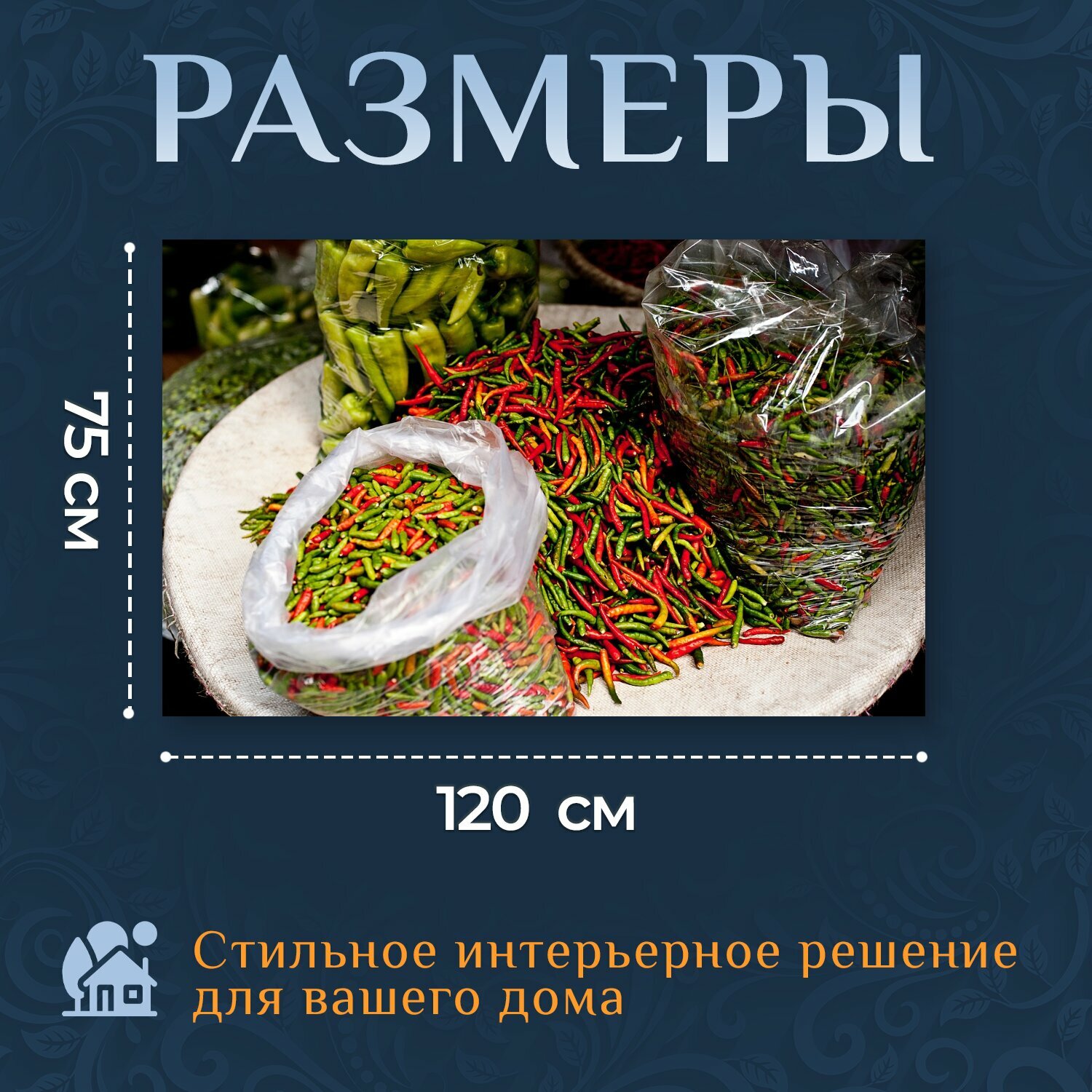 Отзывы на Картина на холсте "Чили, перец, зеленый" на подрамнике 120х75 см. для интерьера