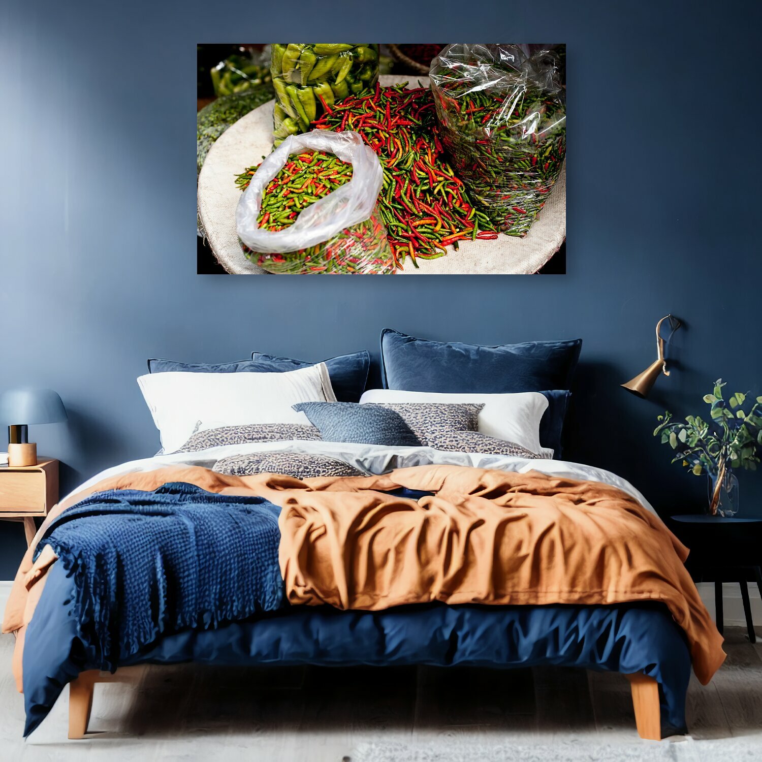10 цен на Картина на холсте "Чили, перец, зеленый" на подрамнике 120х75 см. для интерьера
