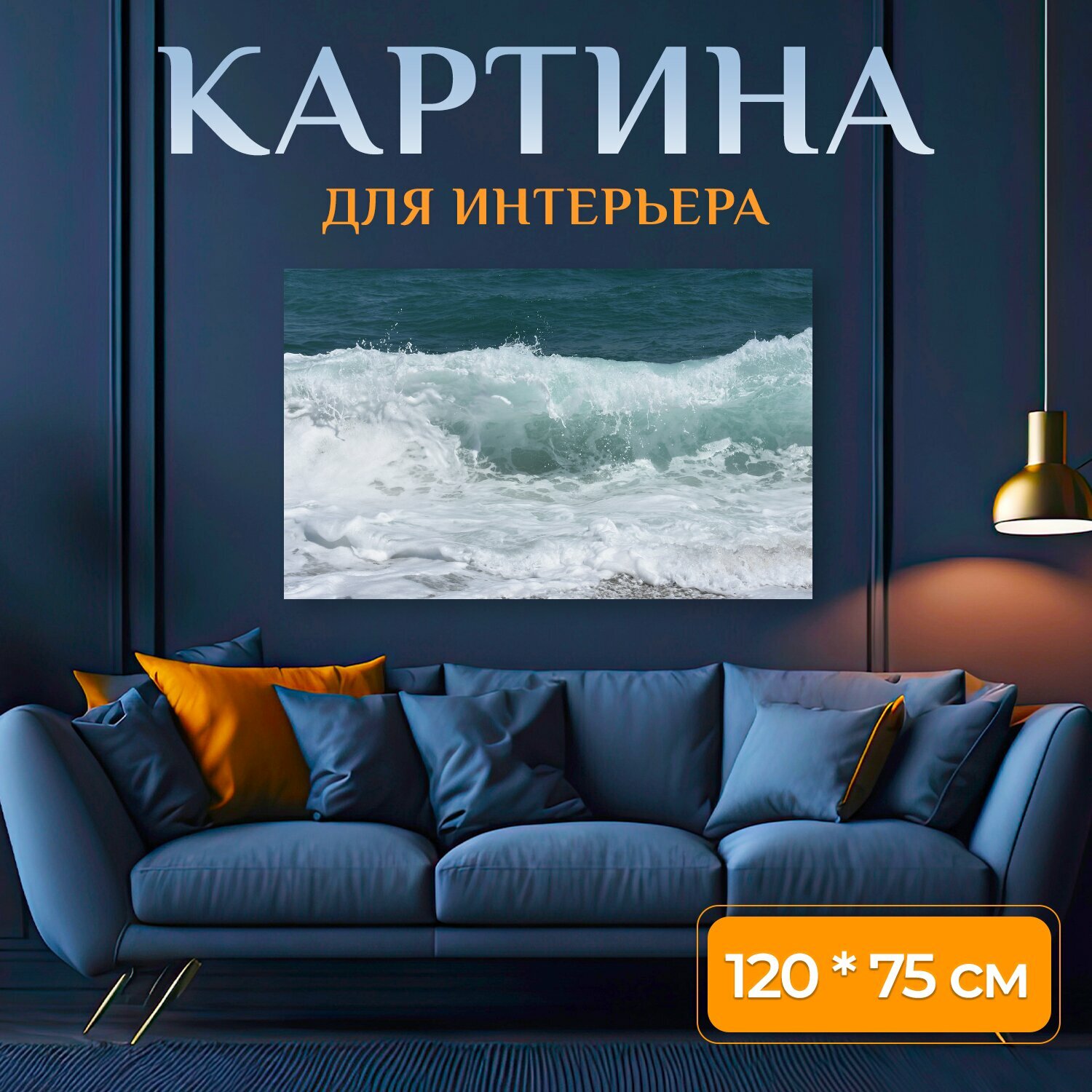 10 цен на Картина на холсте "Пляж, волны, море" на подрамнике 120х75 см. для интерьера