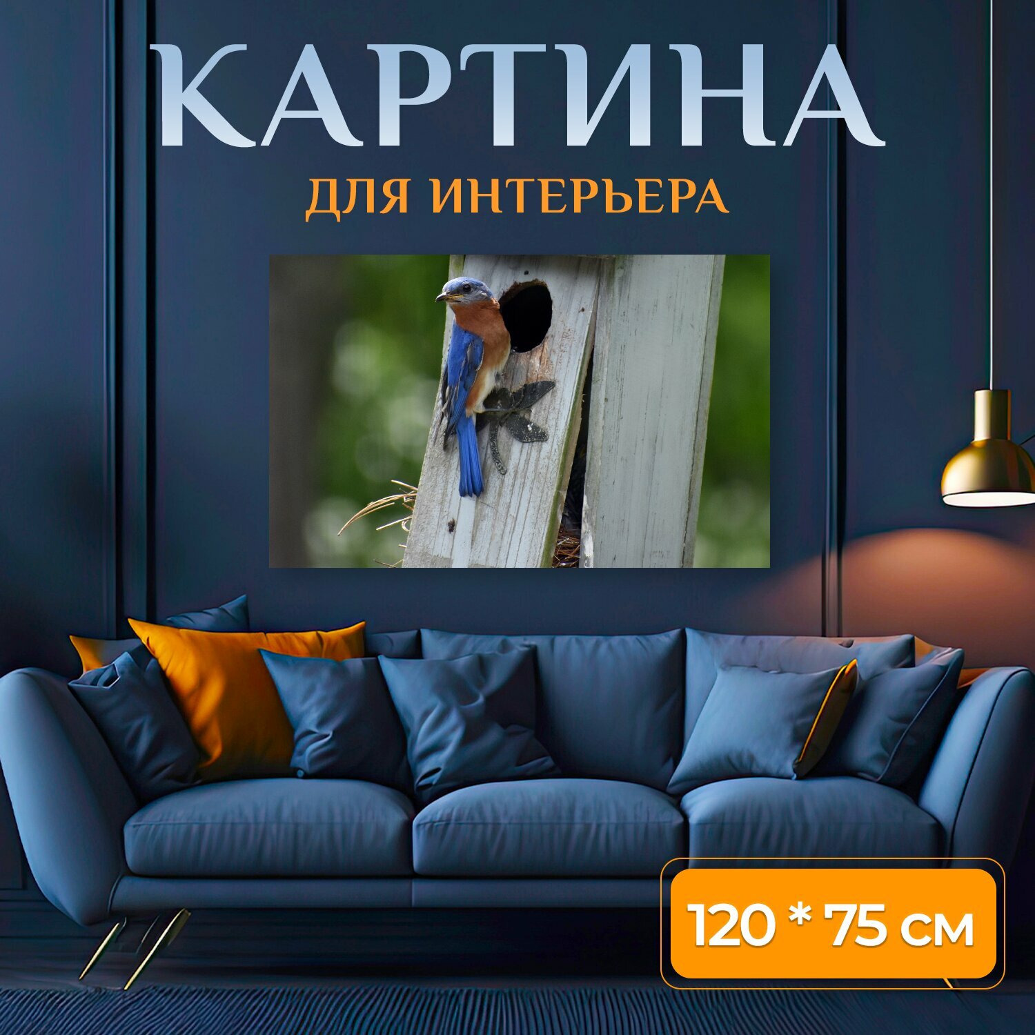 10 цен на Картина на холсте "Синяя птица, птица, природа" на подрамнике 120х75 см. для интерьера