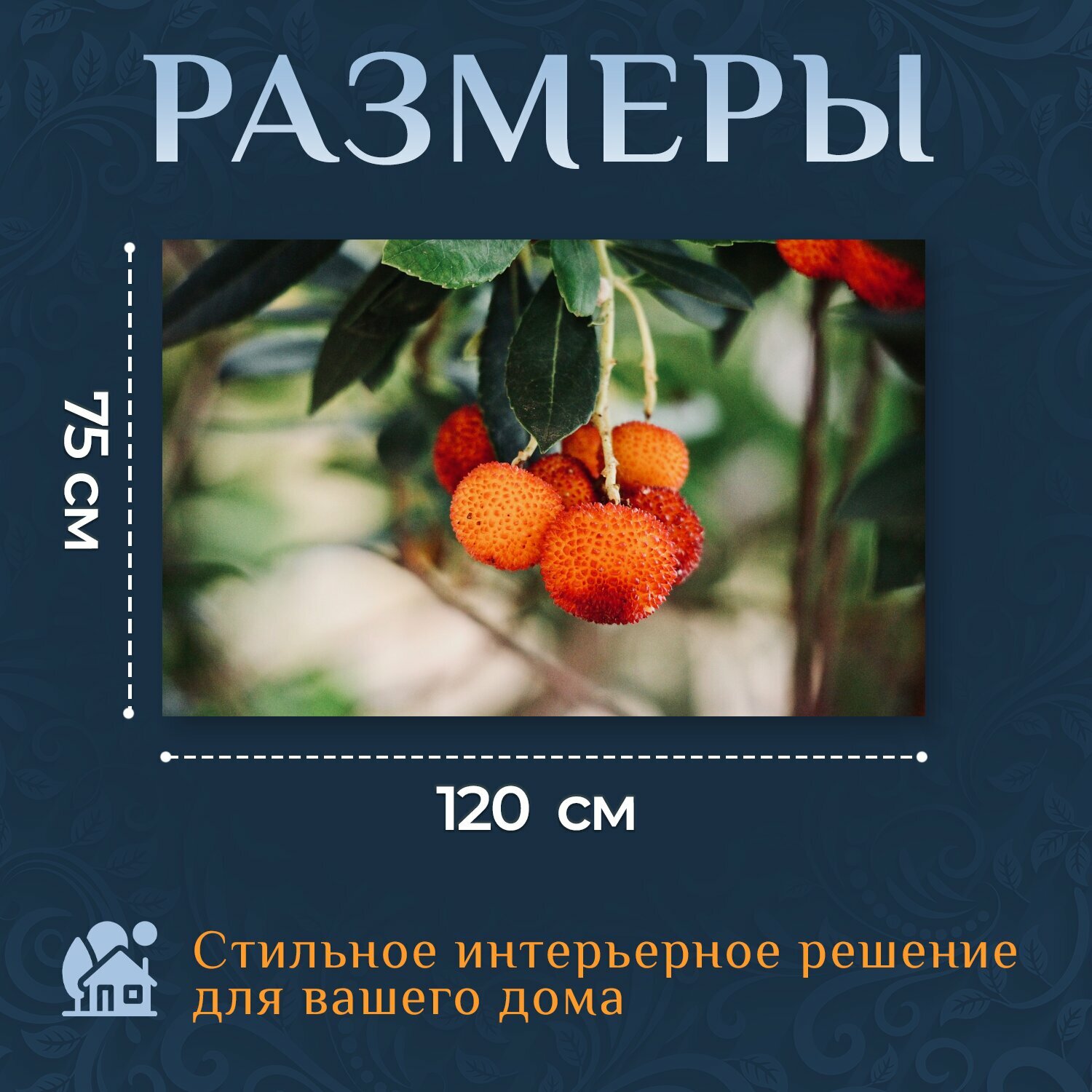 Отзывы на Картина на холсте "Клубничное дерево, фрукты, витамины" на подрамнике 120х75 см. для интерьера