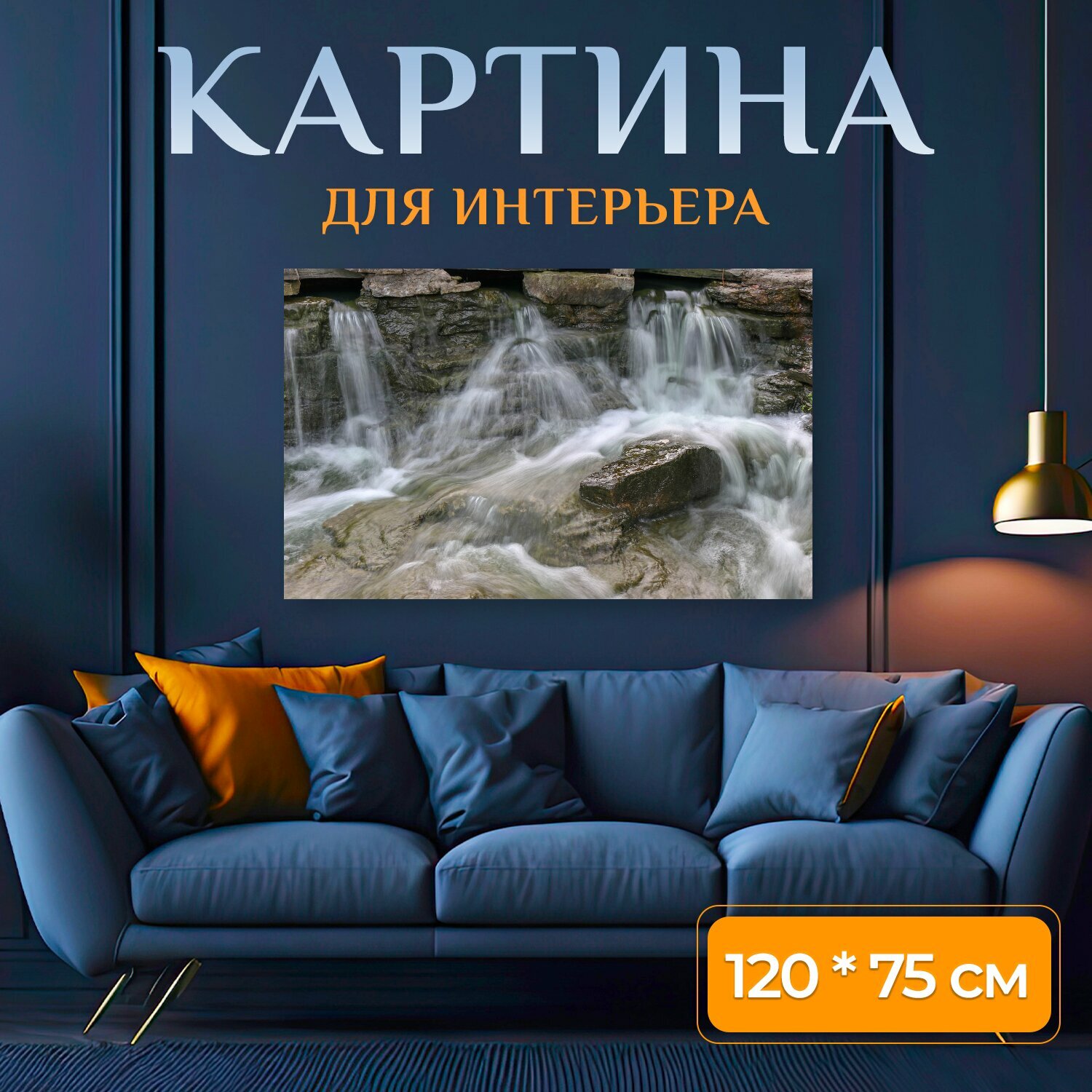 Картина на холсте "Вода, падение, парк" на подрамнике 120х75 см. для интерьера информация: