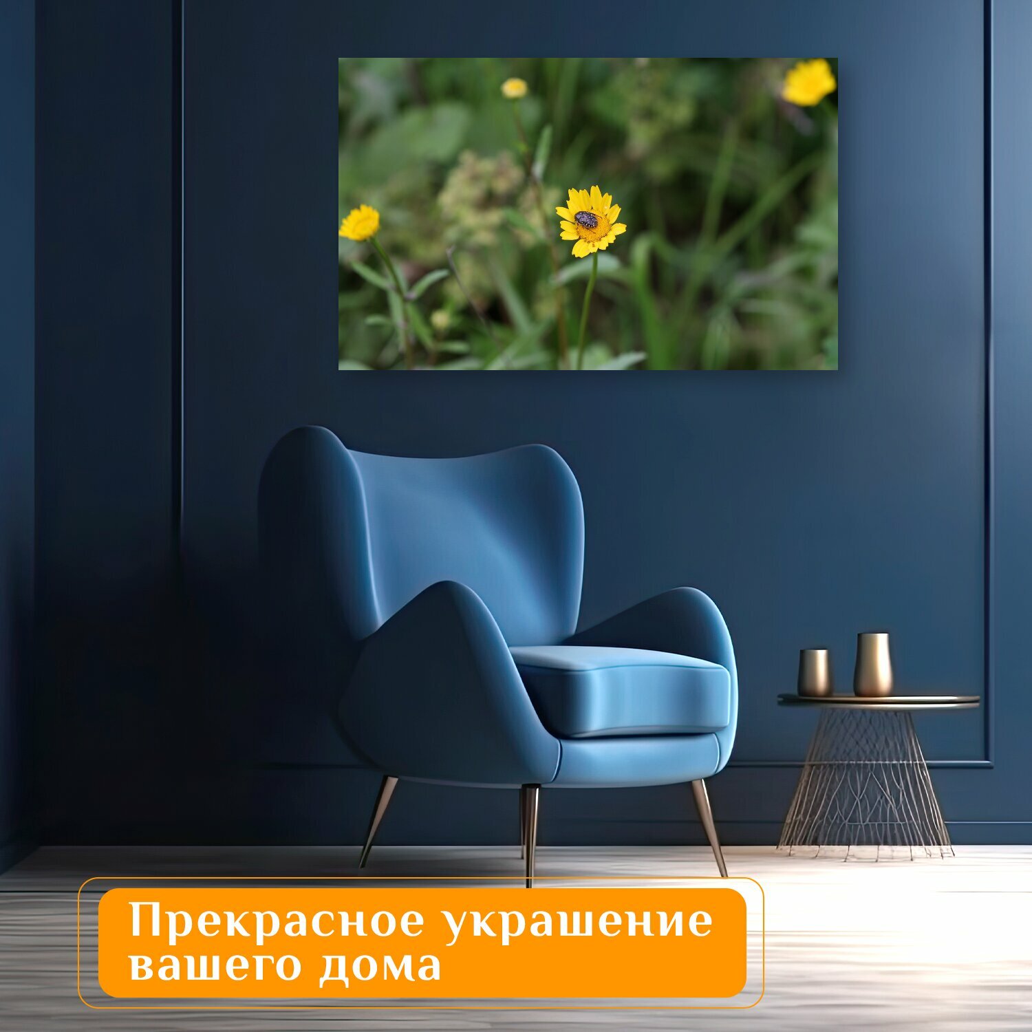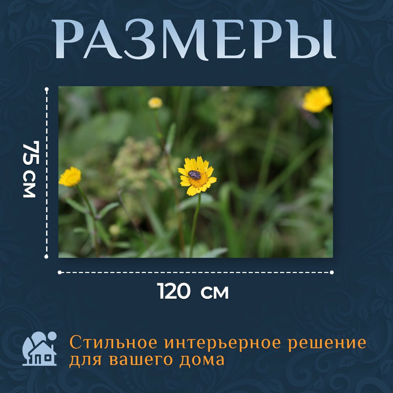 10 цен на Картина на холсте "Цветы, насекомое, жук" на подрамнике 120х75 см. для интерьера