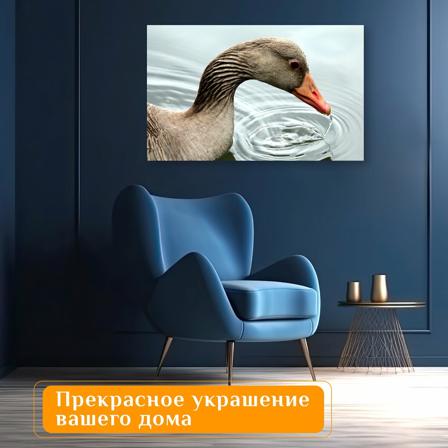 Отзывы на Картина на холсте "Серый гусь, птица, напитки" на подрамнике 120х75 см. для интерьера