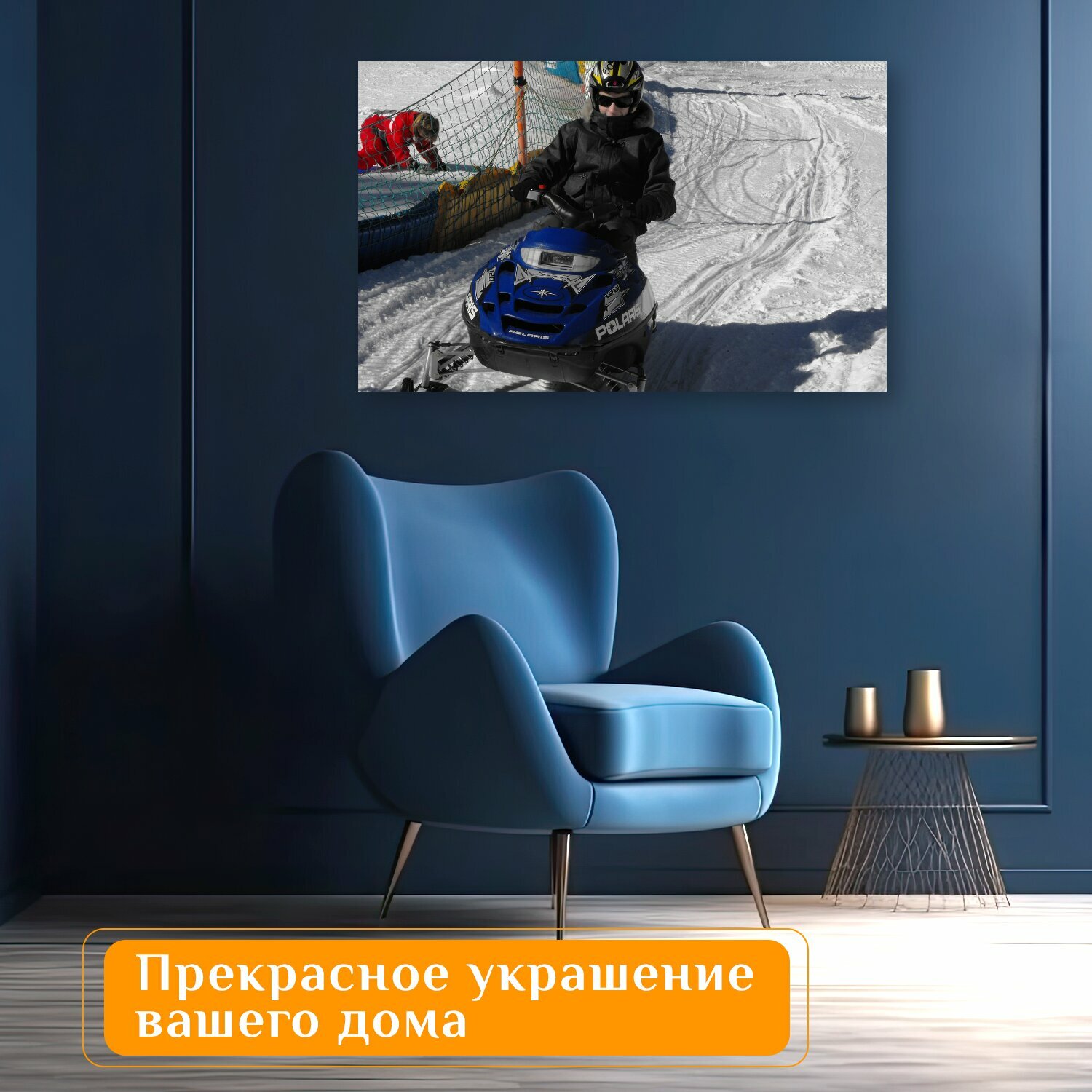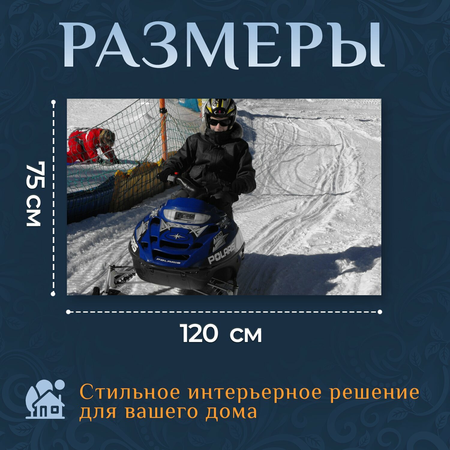 Картина на холсте "Снег, снегоход, зима" на подрамнике 120х75 см. для интерьера информация:
