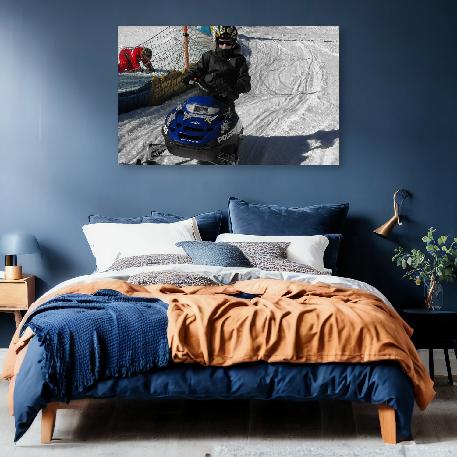 10 цен на Картина на холсте "Снег, снегоход, зима" на подрамнике 120х75 см. для интерьера