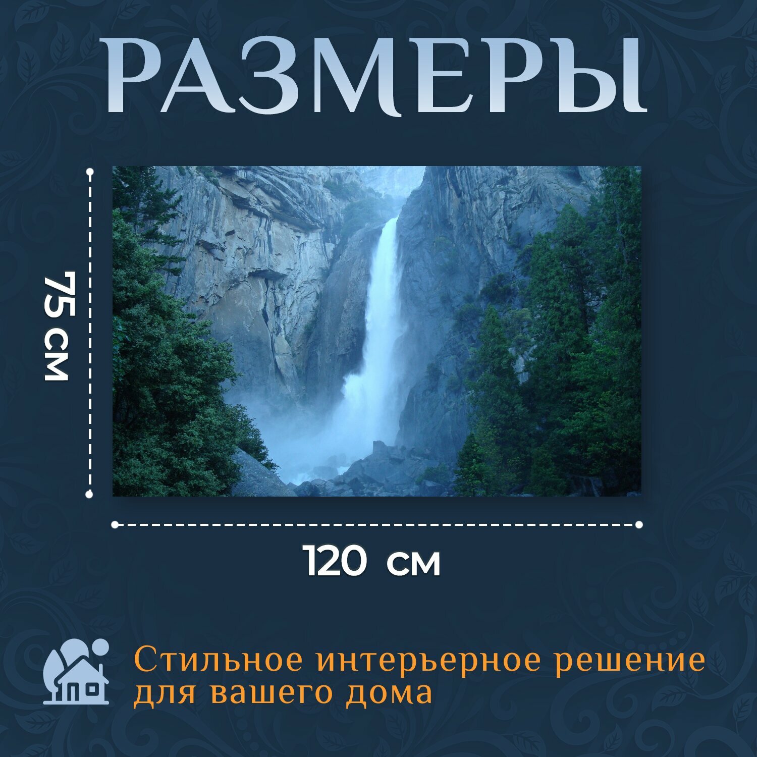 Отзывы на Картина на холсте "Водопад, йосемити, парк" на подрамнике 120х75 см. для интерьера