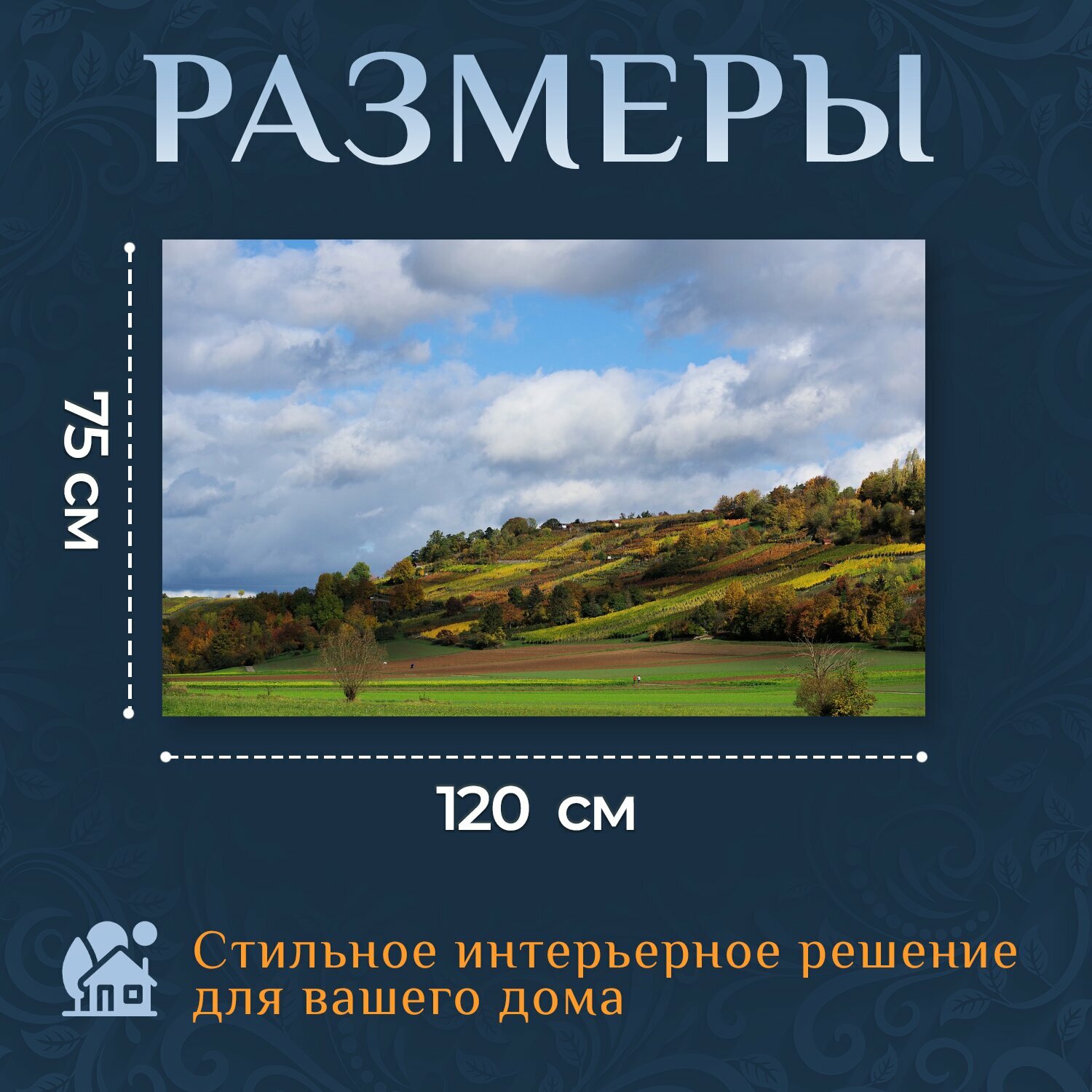10 цен на Картина на холсте "Поле, луг, деревья" на подрамнике 120х75 см. для интерьера
