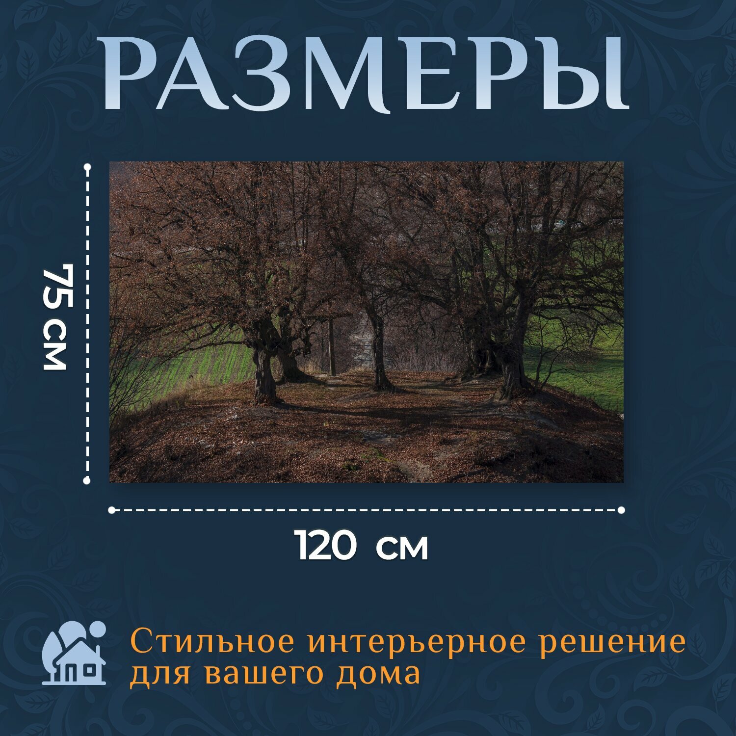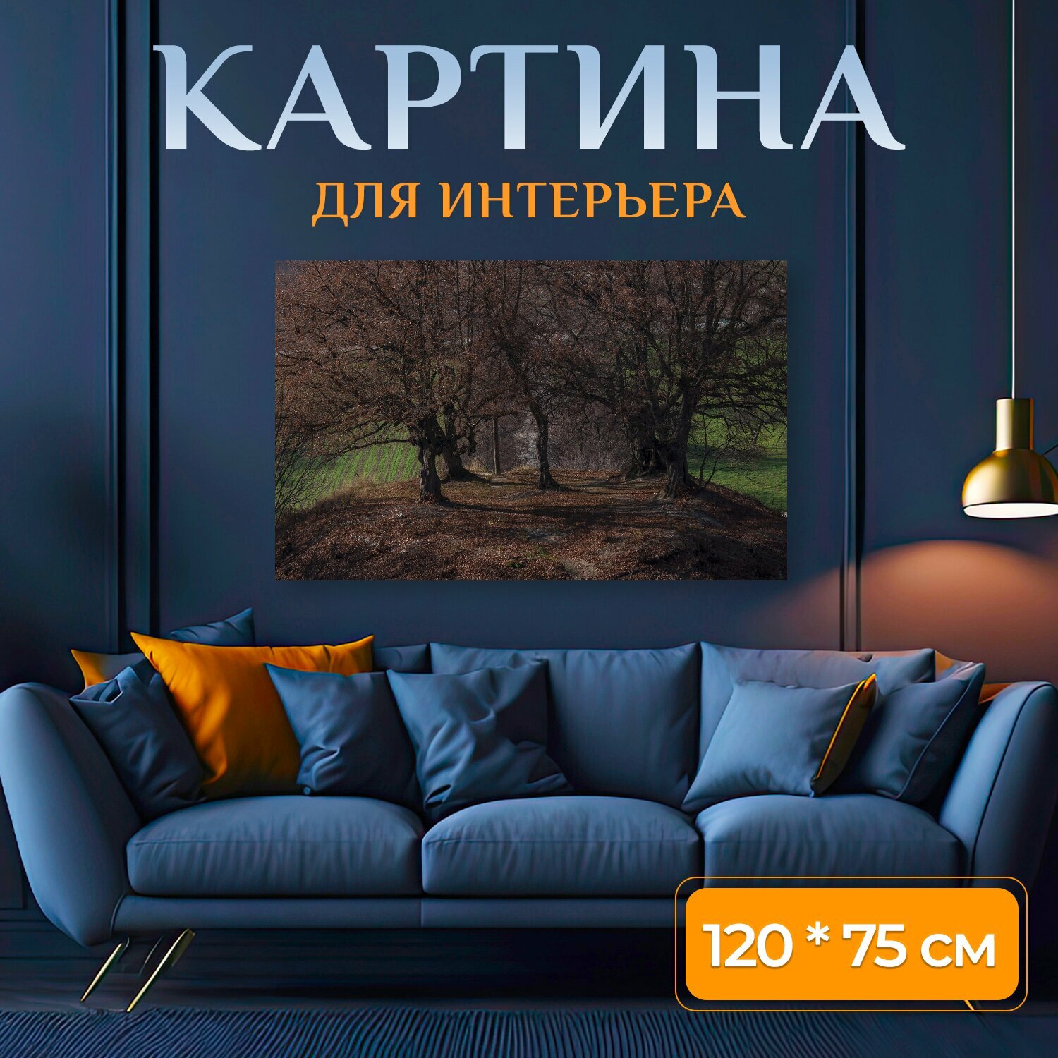 10 цен на Картина на холсте "Деревья, лес, трава" на подрамнике 120х75 см. для интерьера