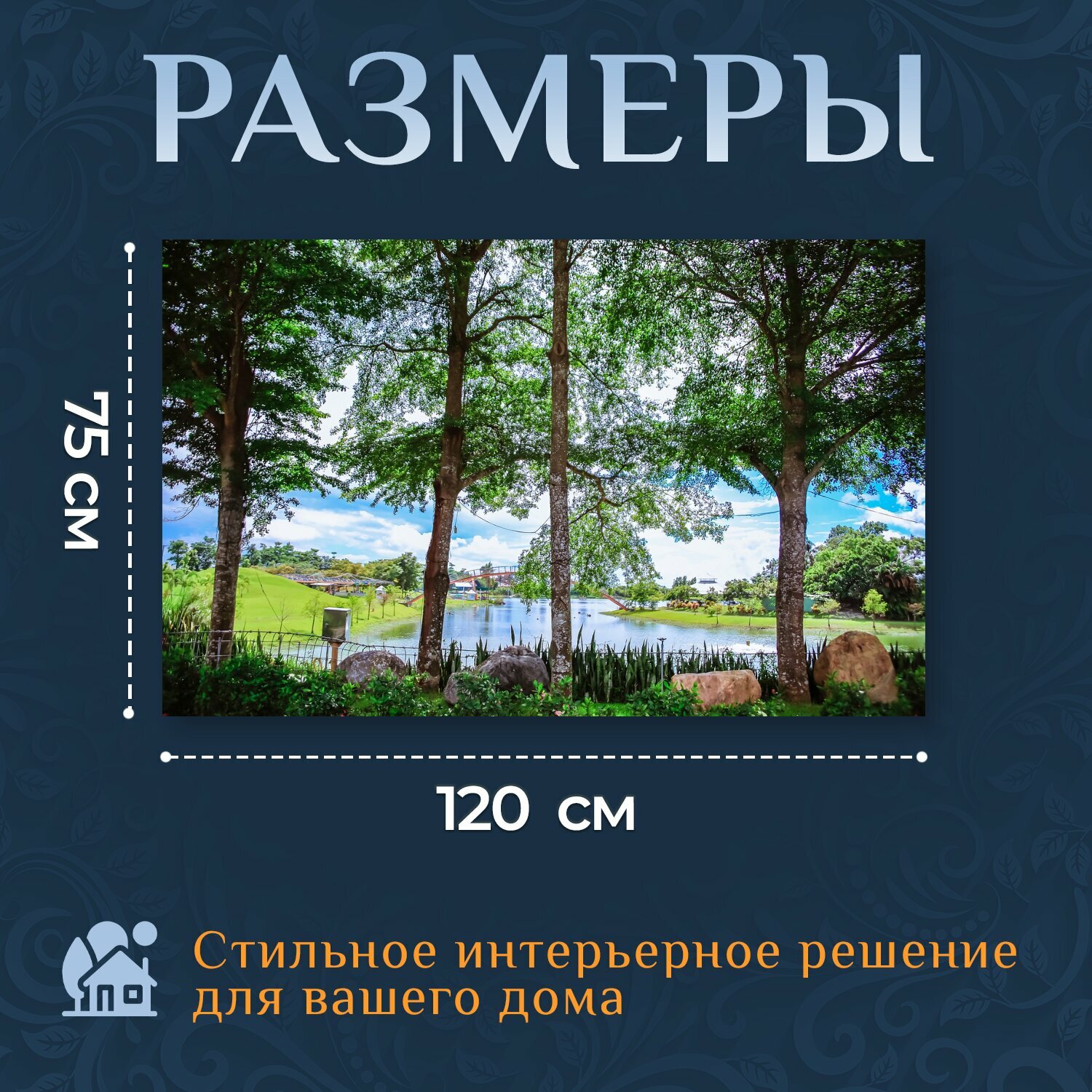Картина на холсте "Лес, озеро, вода" на подрамнике 120х75 см. для интерьера информация: