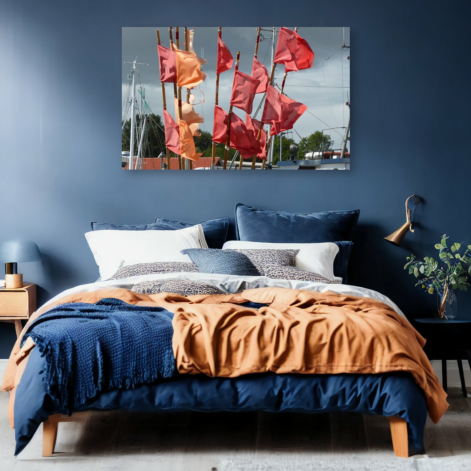 Картина на холсте "Флаги, море, флаг" на подрамнике 120х75 см. для интерьера информация: