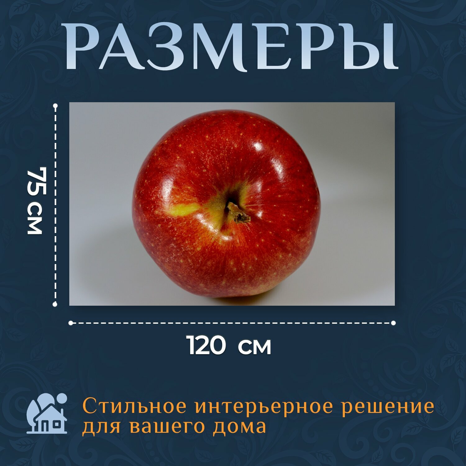 Картина на холсте "Яблоко, красный, вкусный" на подрамнике 120х75 см. для интерьера информация:
