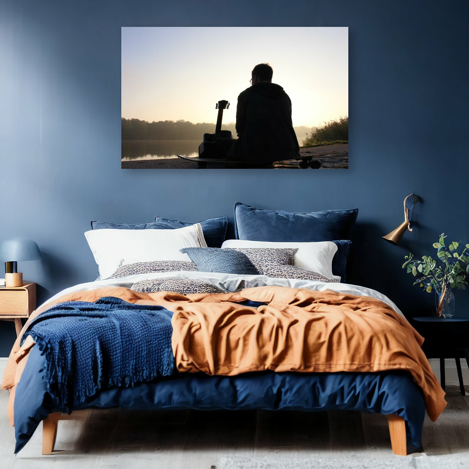 10 цен на Картина на холсте "Музыкант, солнце, свободное время" на подрамнике 120х75 см. для интерьера