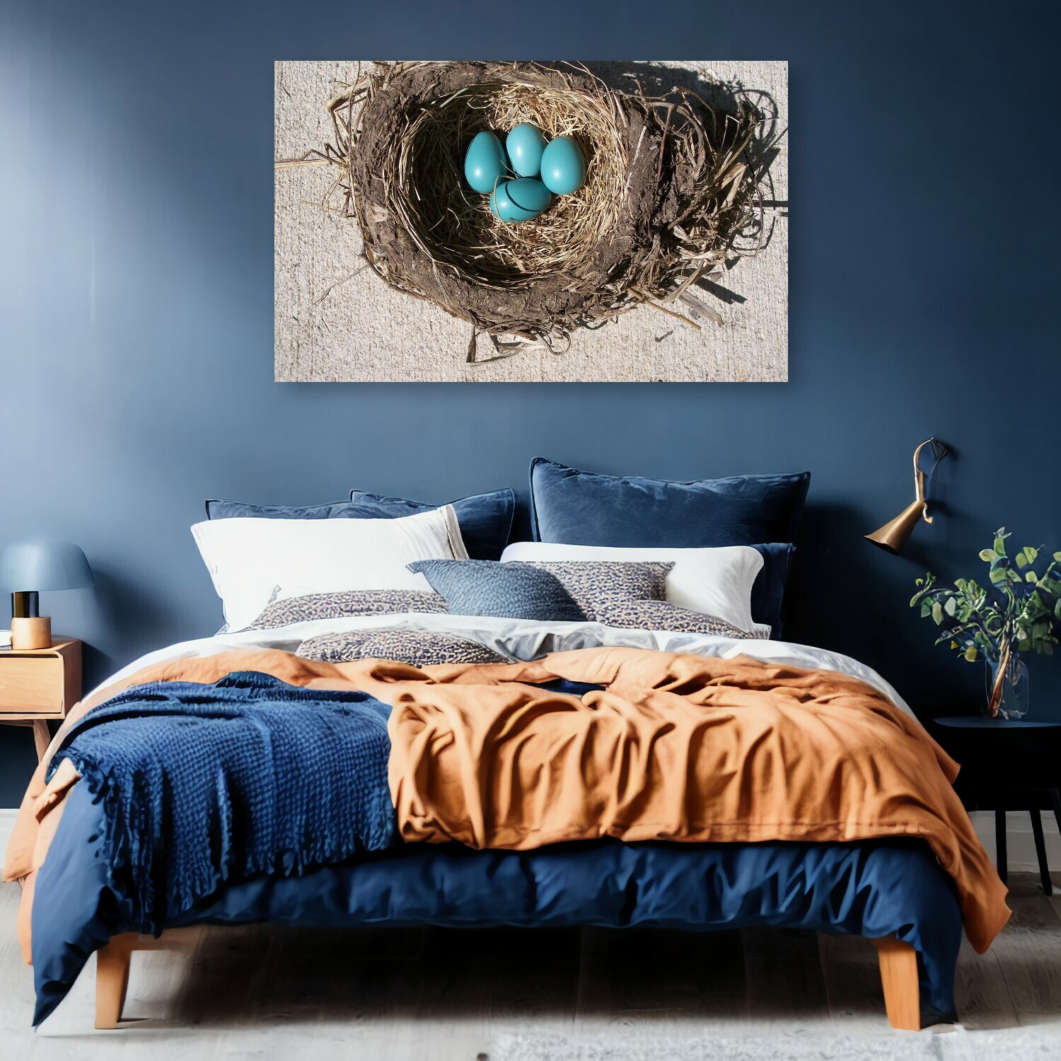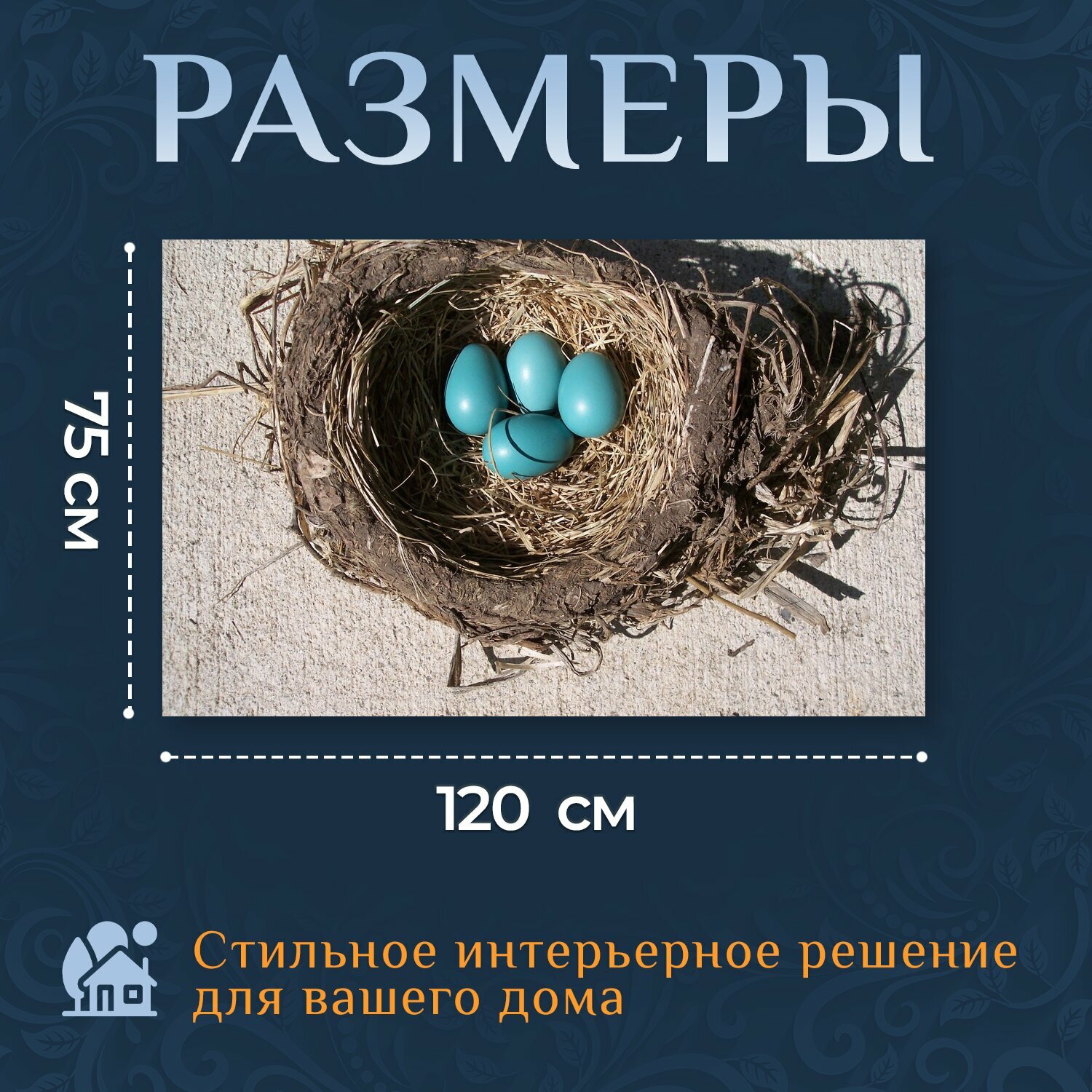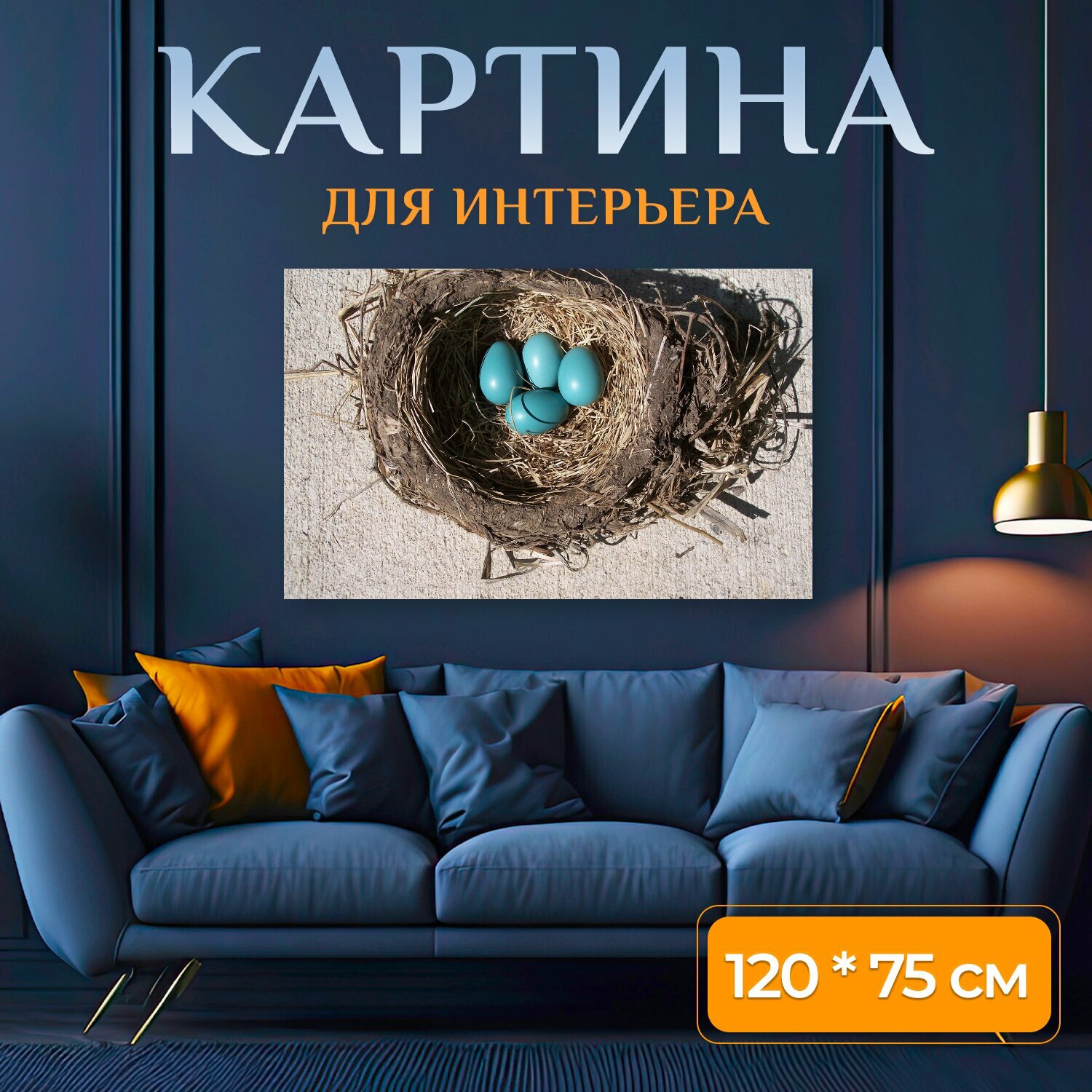 10 цен на Картина на холсте "Яйцо, гнездо, птица" на подрамнике 120х75 см. для интерьера