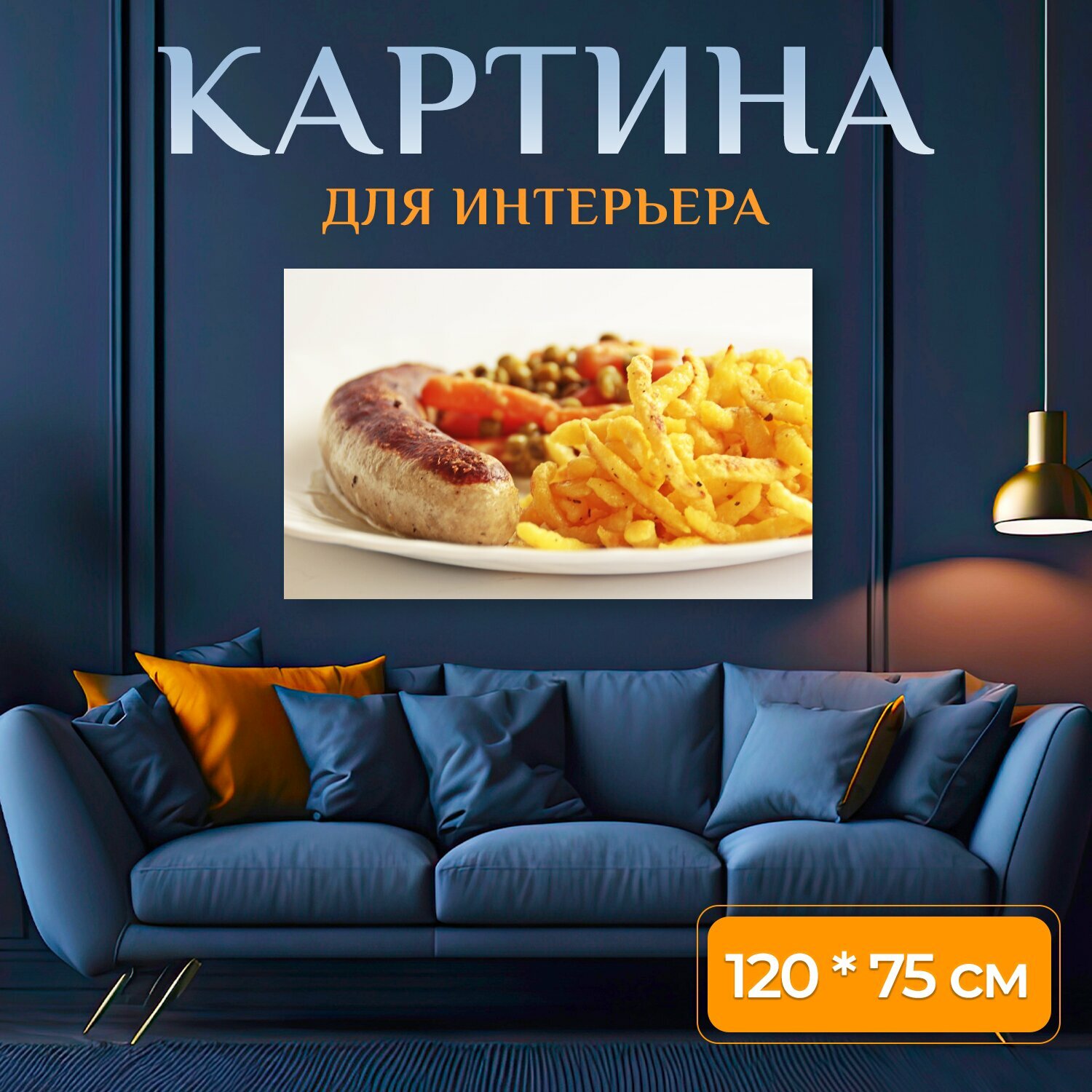 Картина на холсте "Колбаса, овощи, лапша" на подрамнике 120х75 см. для интерьера информация: