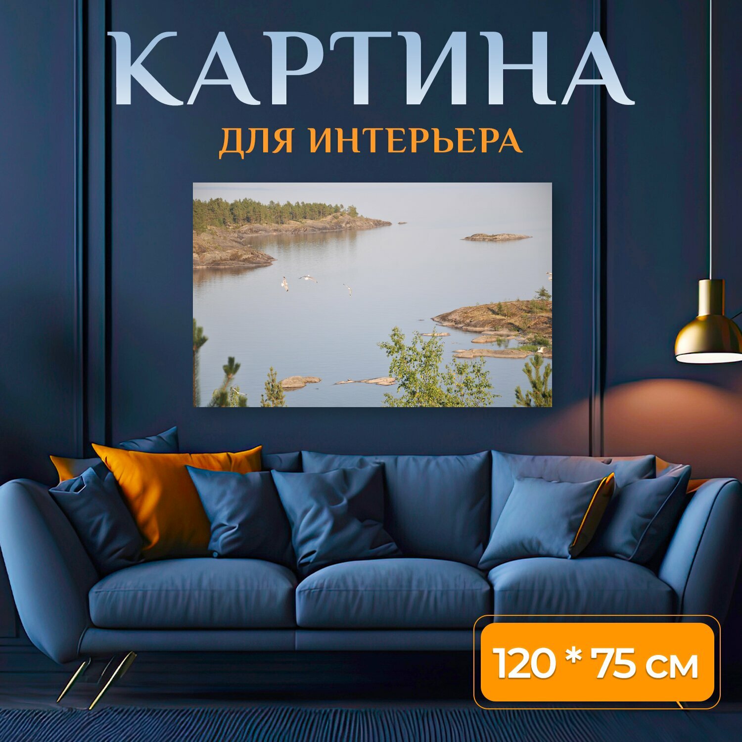 10 цен на Картина на холсте "Озеро, ладога, пейзаж" на подрамнике 120х75 см. для интерьера