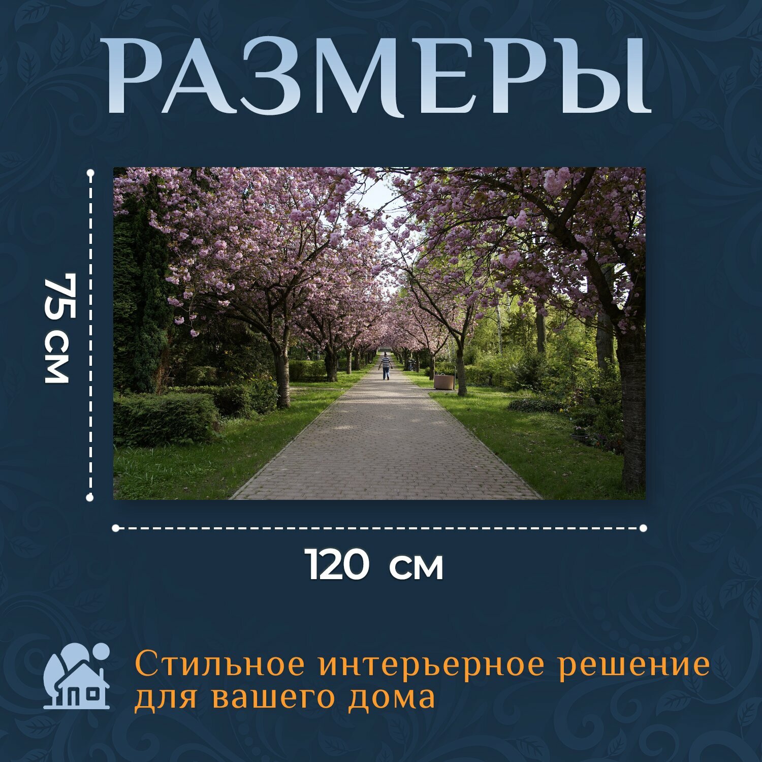 Картина на холсте "Дорожка, вишня в цвету, кладбище" на подрамнике 120х75 см. для интерьера информация: