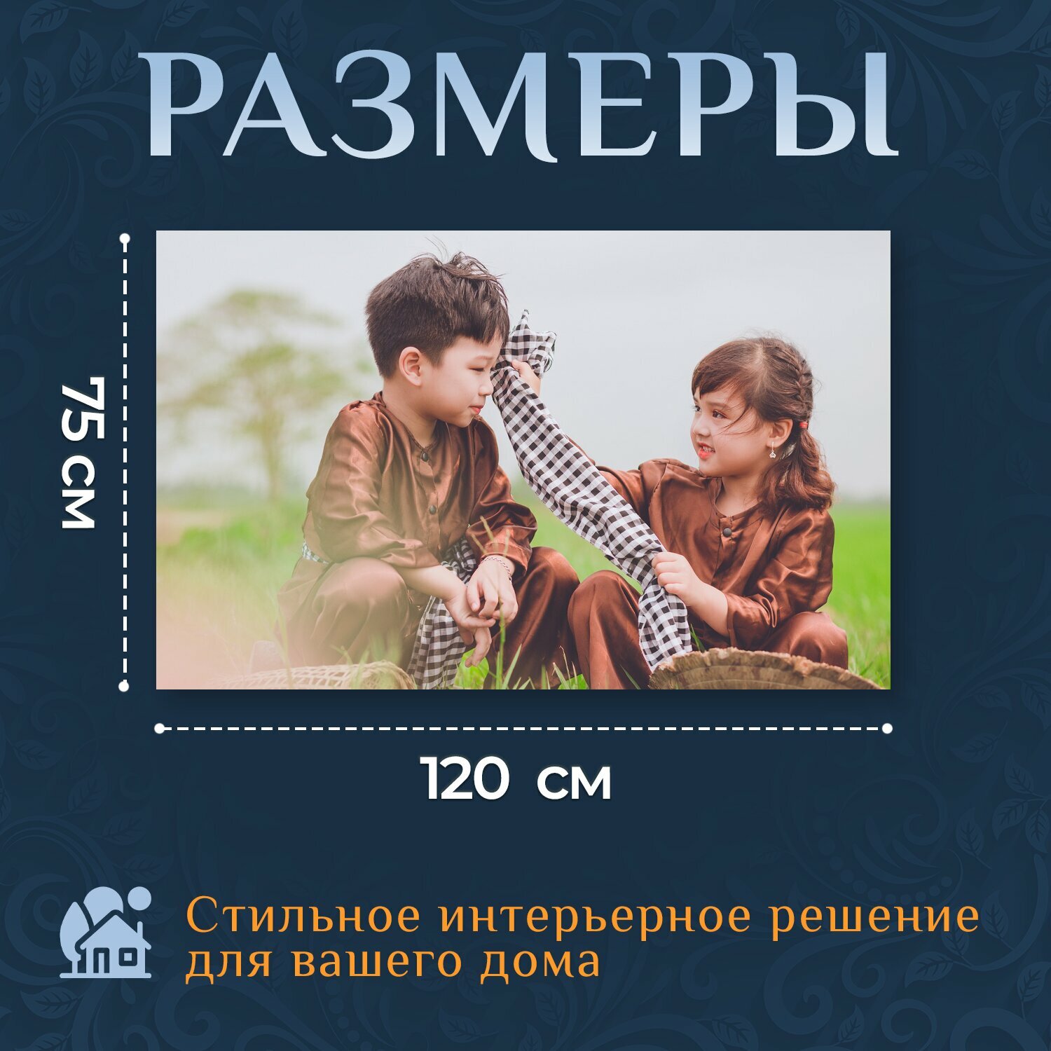 10 цен на Картина на холсте "Дети, любовь, пару" на подрамнике 120х75 см. для интерьера