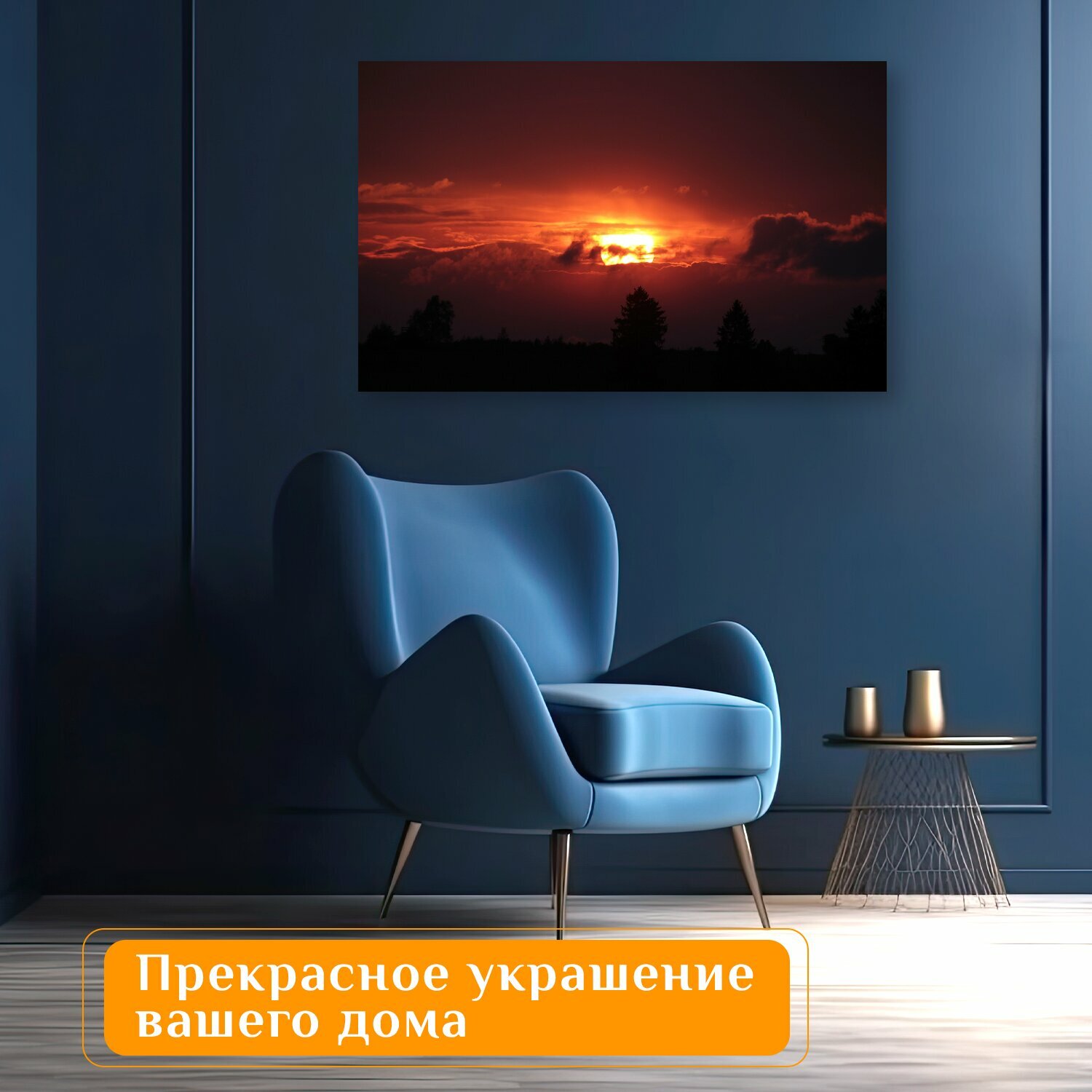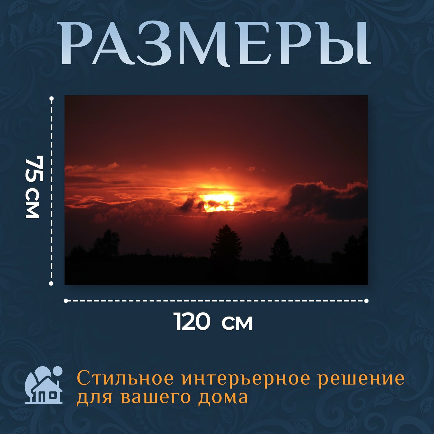 Картина на холсте "Заход солнца, солнце, вечерняя атмосфера" на подрамнике 120х75 см. для интерьера информация: