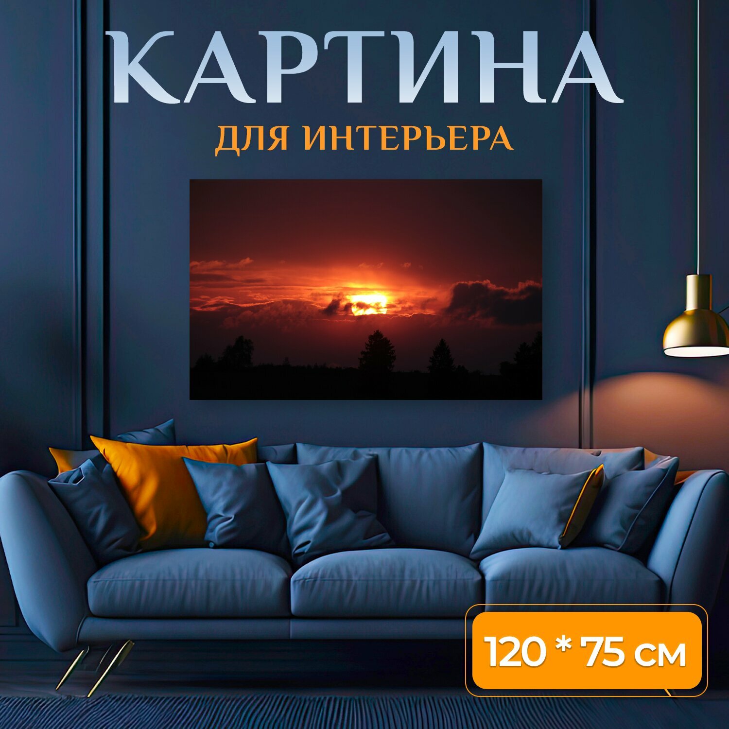 10 цен на Картина на холсте "Заход солнца, солнце, вечерняя атмосфера" на подрамнике 120х75 см. для интерьера