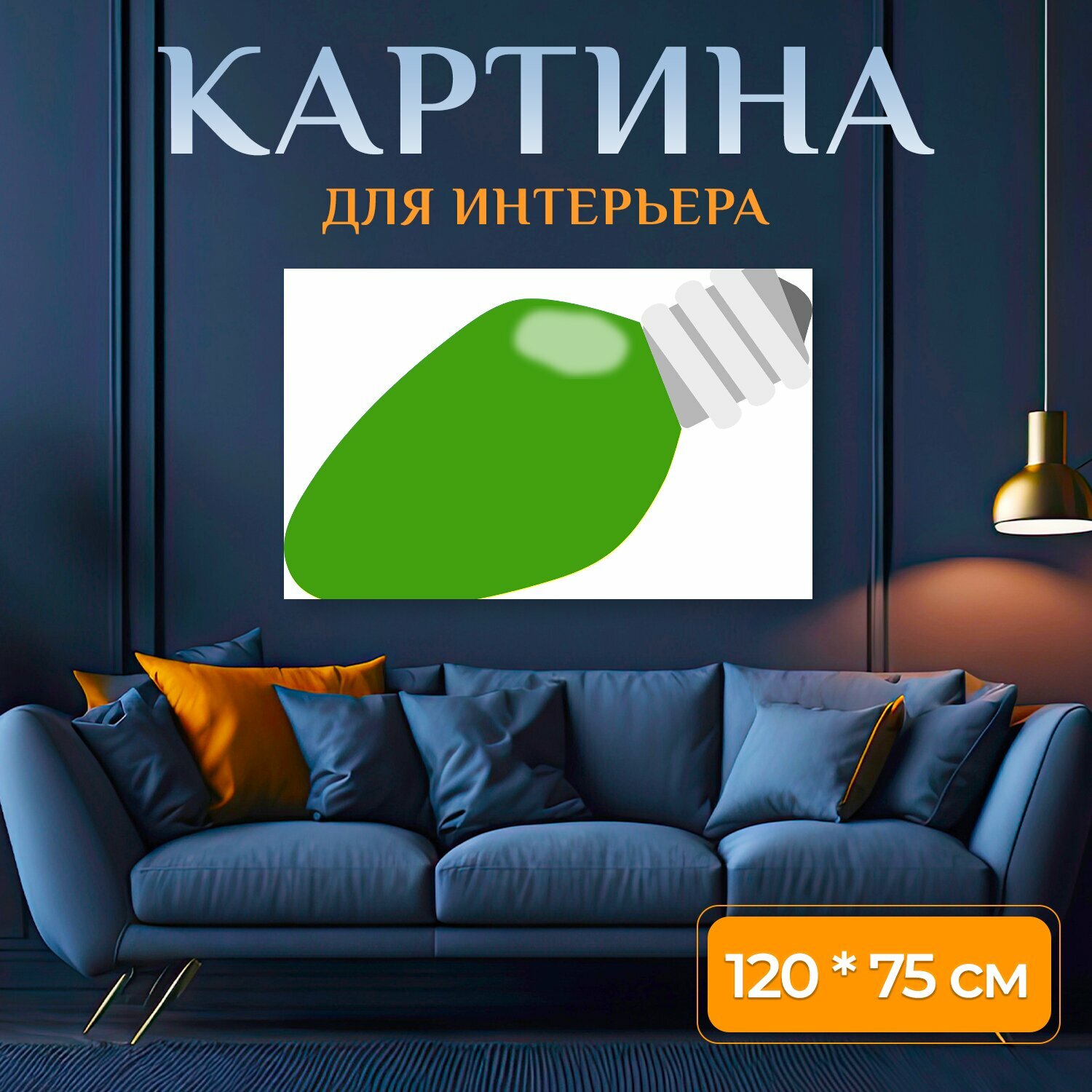 10 цен на Картина на холсте "Лампочка, зеленый, свет" на подрамнике 120х75 см. для интерьера