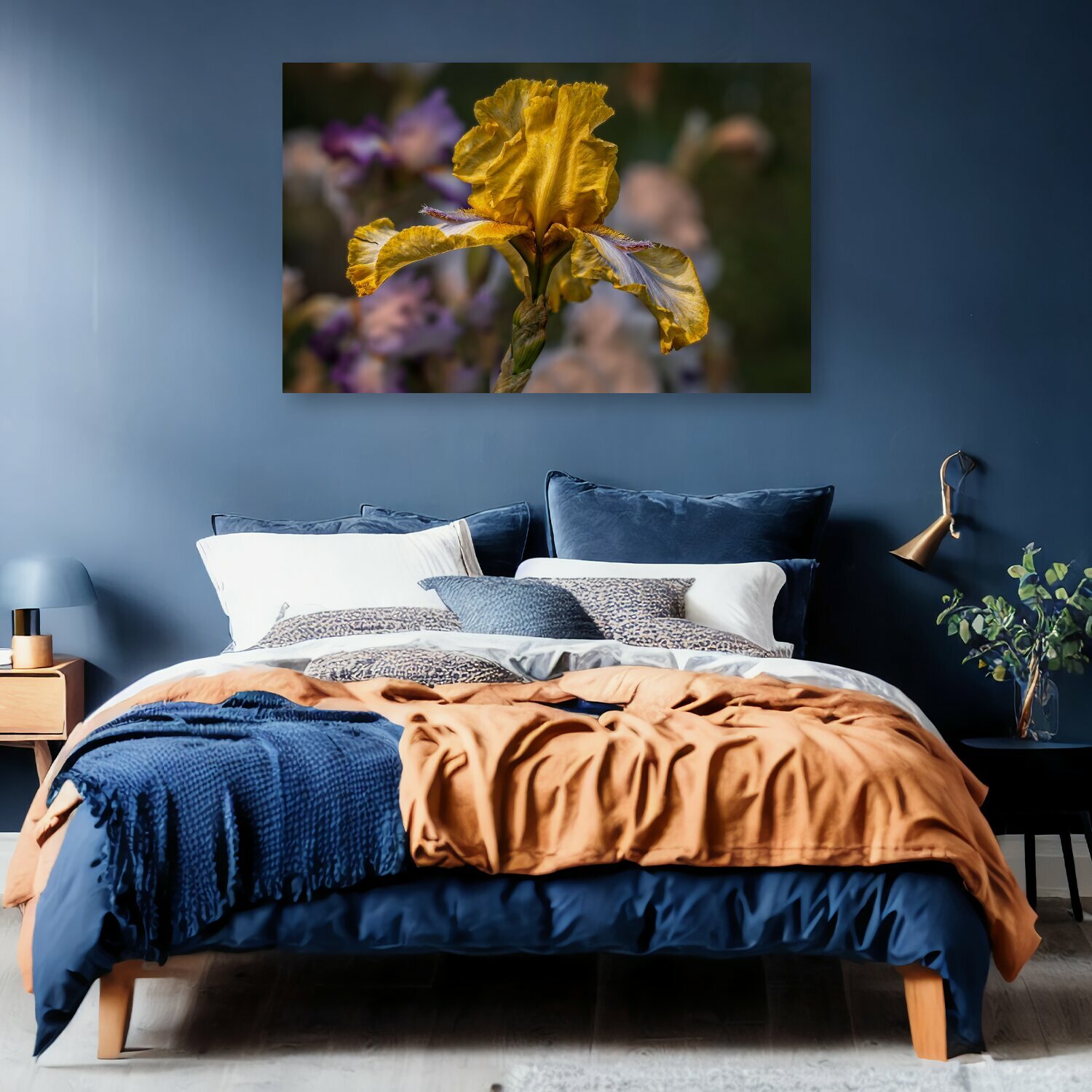 10 цен на Картина на холсте "Сад, ирис, цветок" на подрамнике 120х75 см. для интерьера
