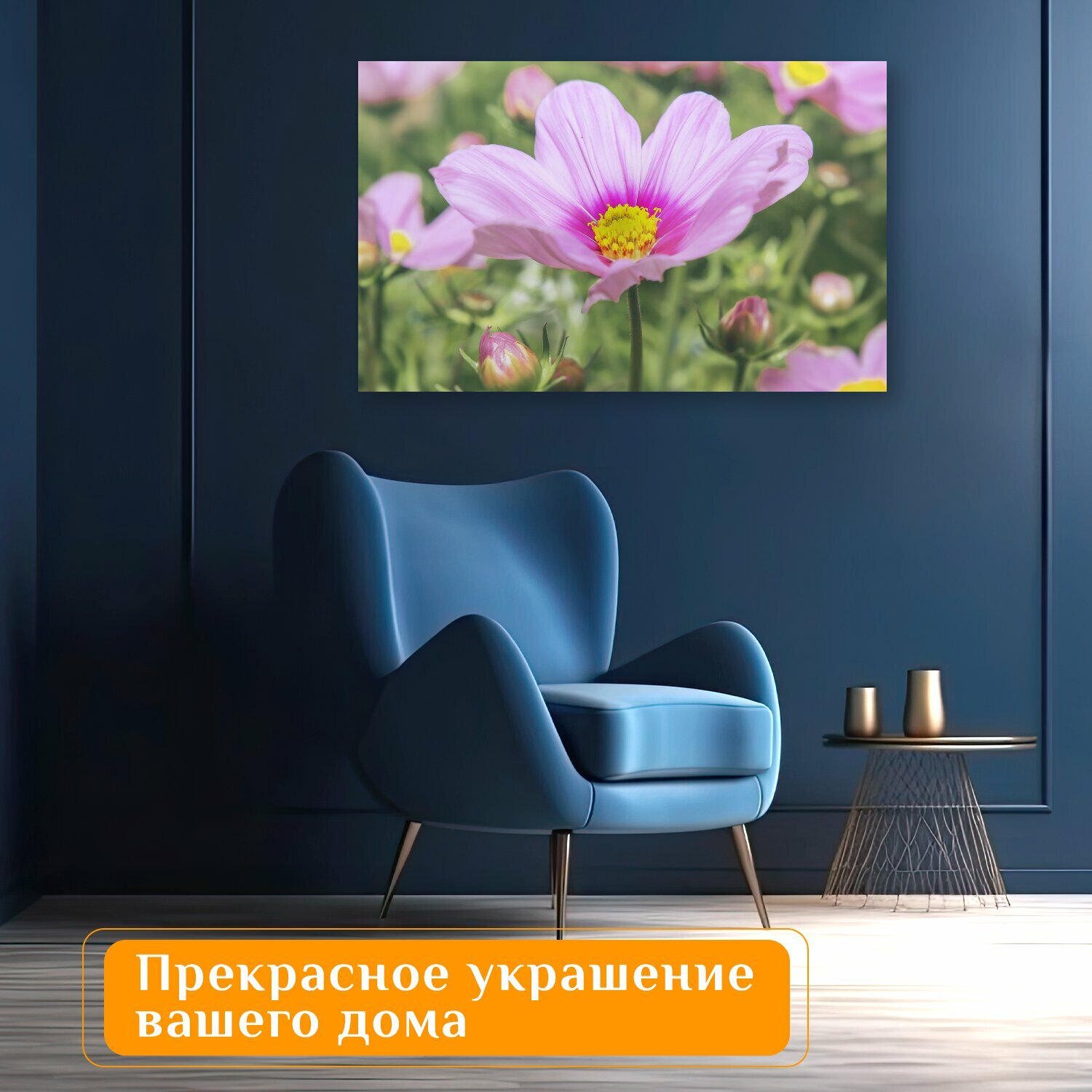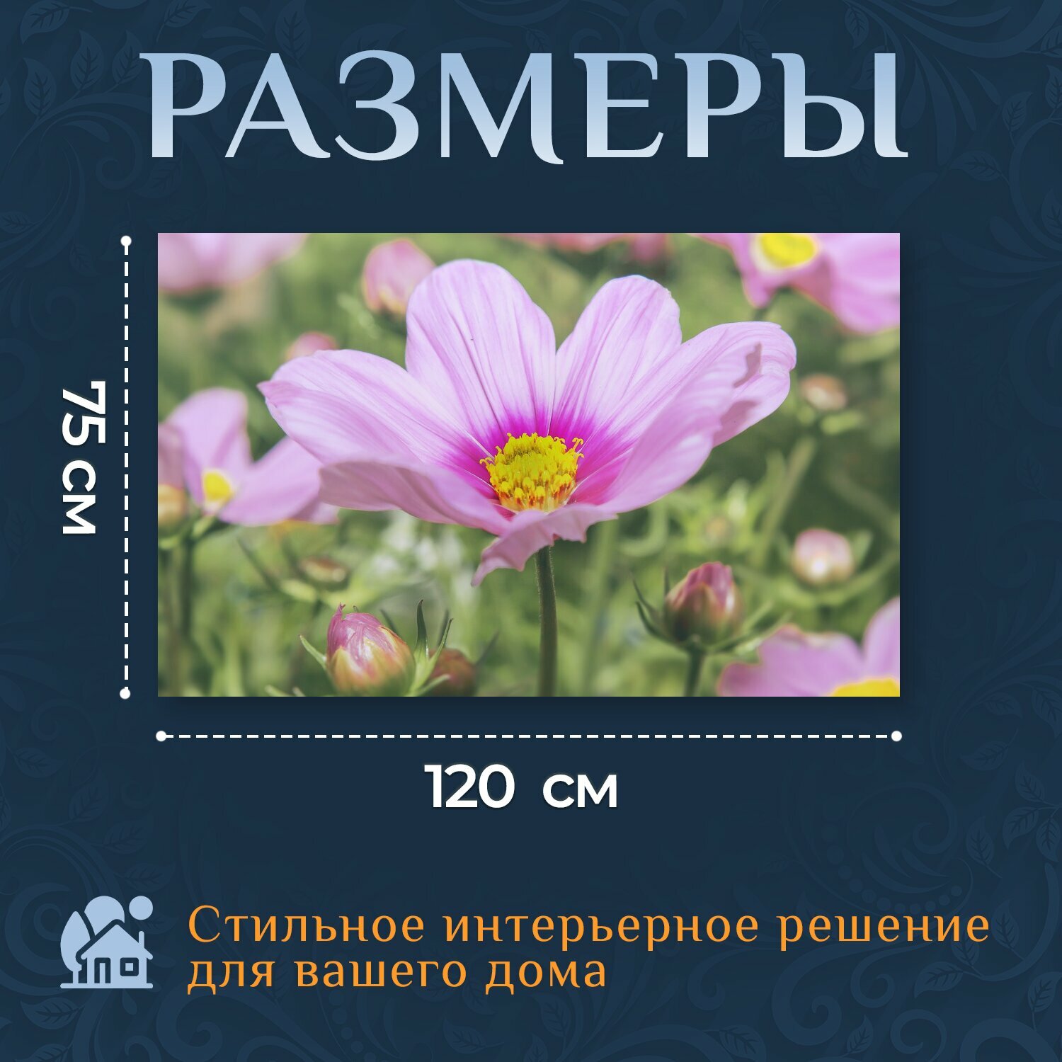 Картина на холсте "Космея, розовый, цветок" на подрамнике 120х75 см. для интерьера информация:
