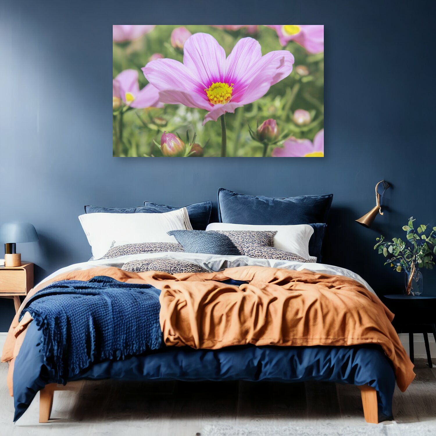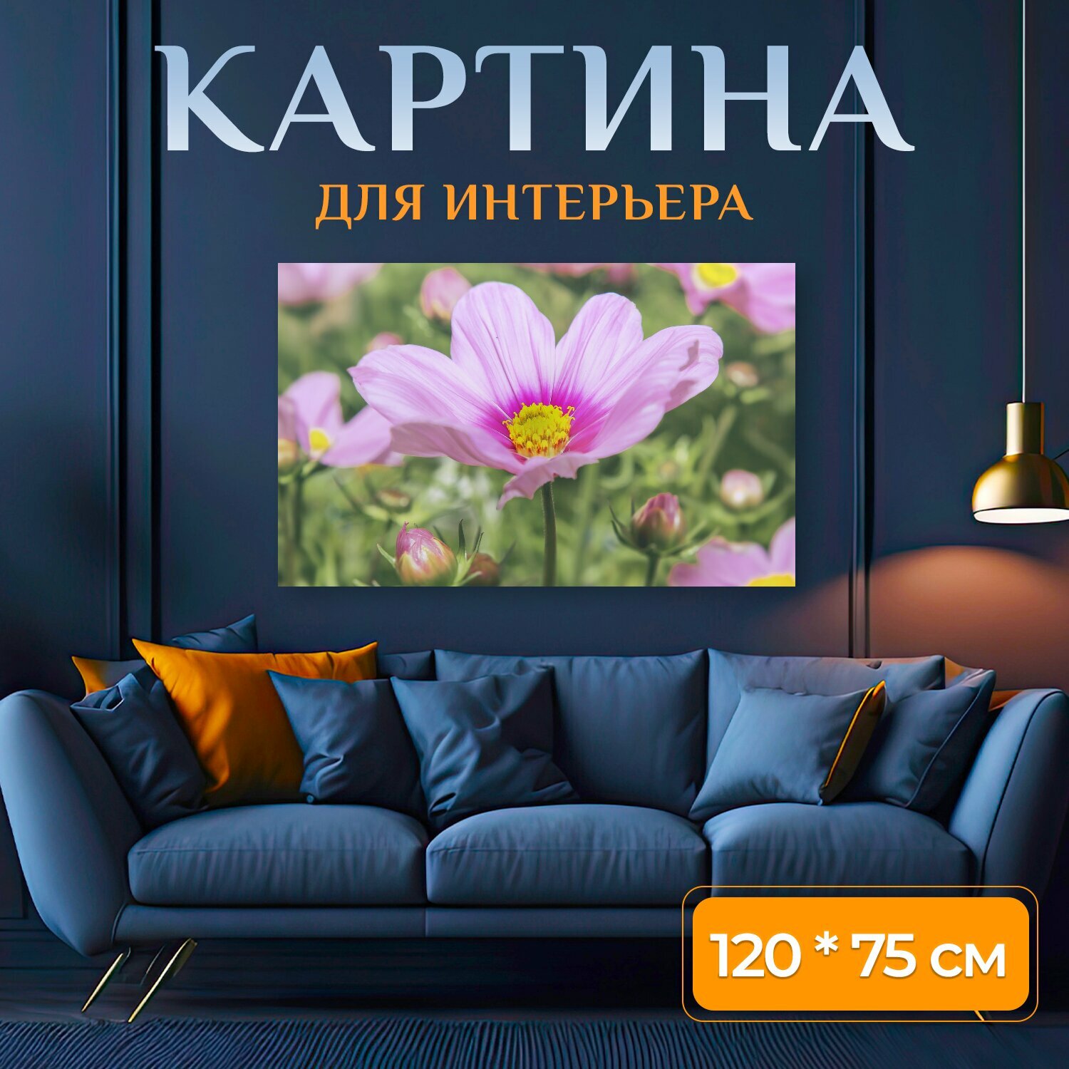 10 цен на Картина на холсте "Космея, розовый, цветок" на подрамнике 120х75 см. для интерьера