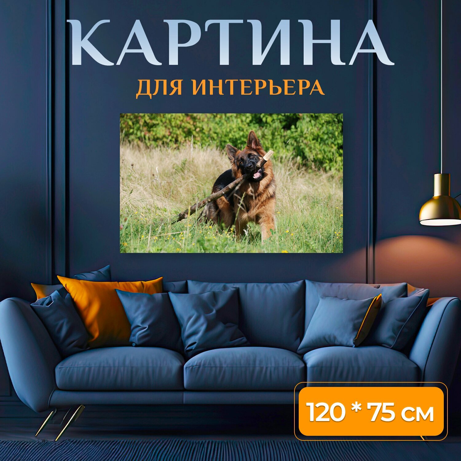 10 цен на Картина на холсте "Пастушья собака, собака, домашнее животное" на подрамнике 120х75 см. для интерьера