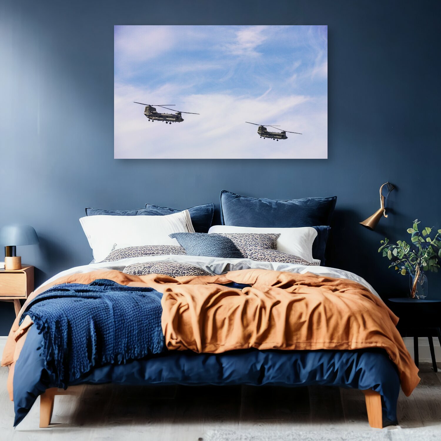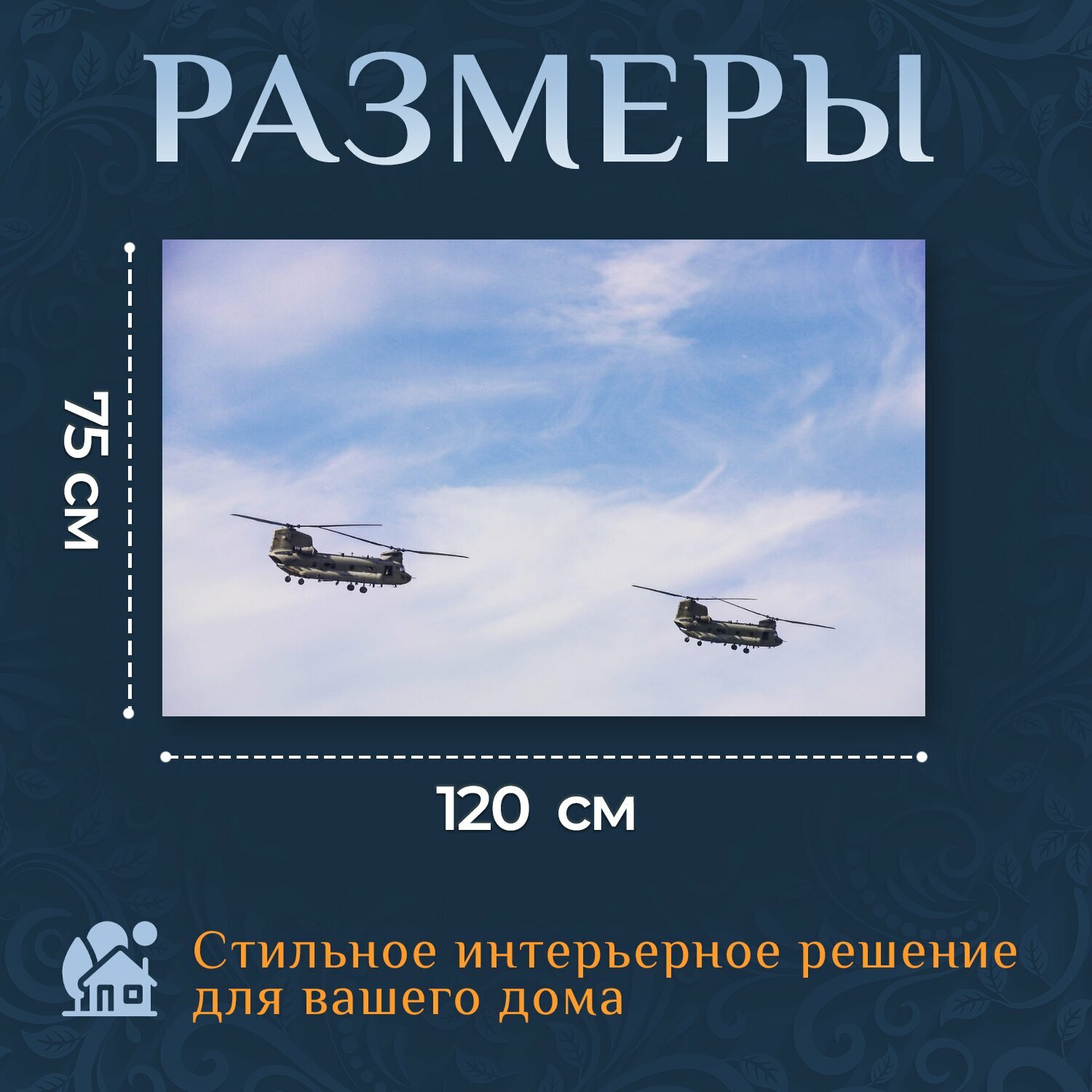 10 цен на Картина на холсте "Вертолет, небо, облака" на подрамнике 120х75 см. для интерьера
