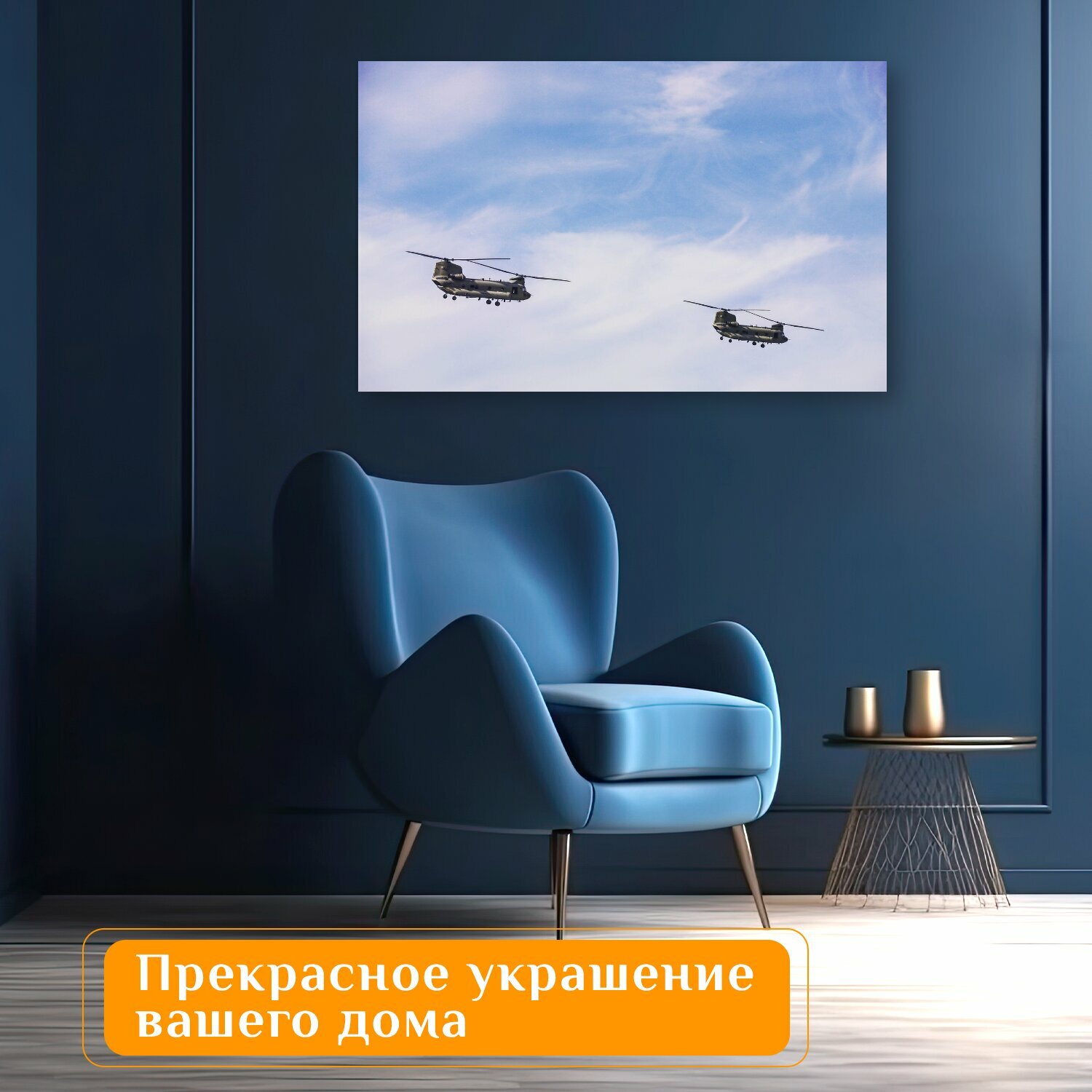 Отзывы на Картина на холсте "Вертолет, небо, облака" на подрамнике 120х75 см. для интерьера