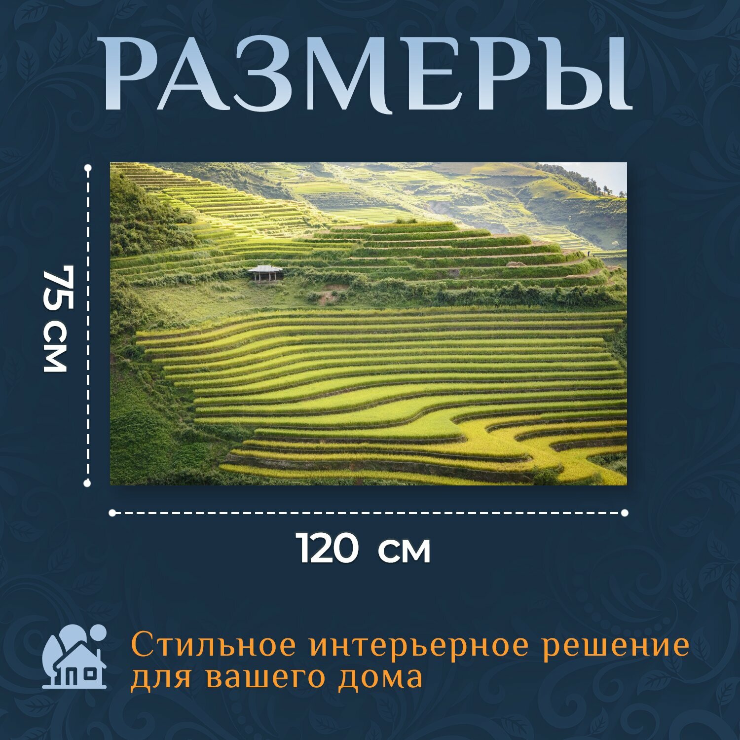 Картина на холсте "Террасы, вареный рис, заход солнца" на подрамнике 120х75 см. для интерьера информация: