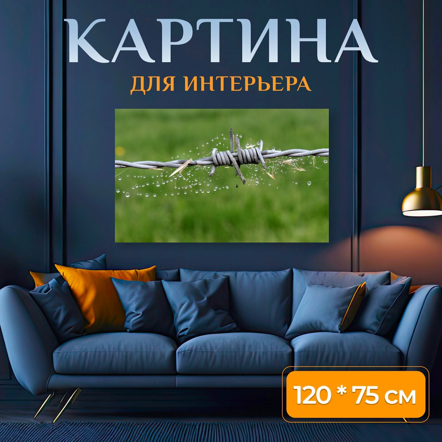 Картина на холсте "Провод, колючая проволока, изгородь" на подрамнике 120х75 см. для интерьера информация: