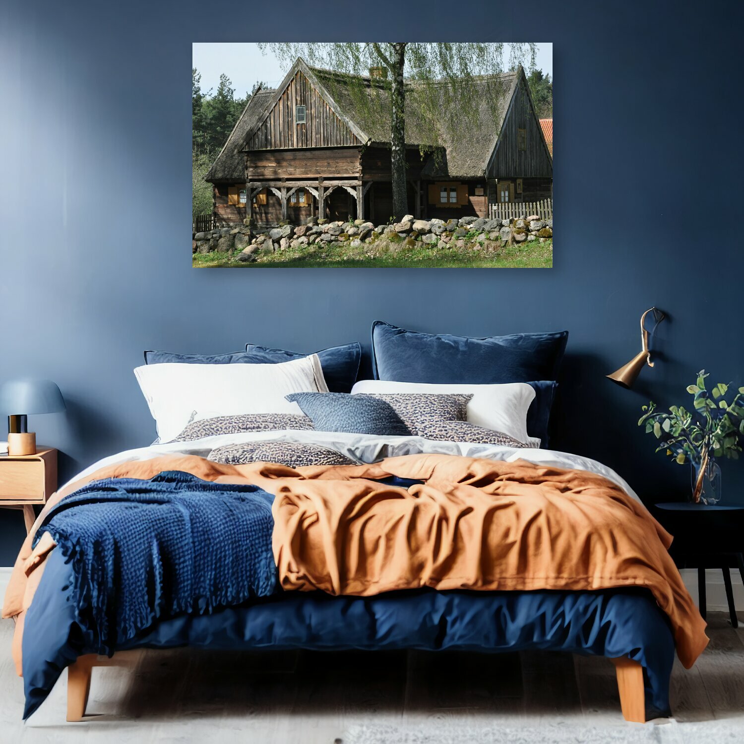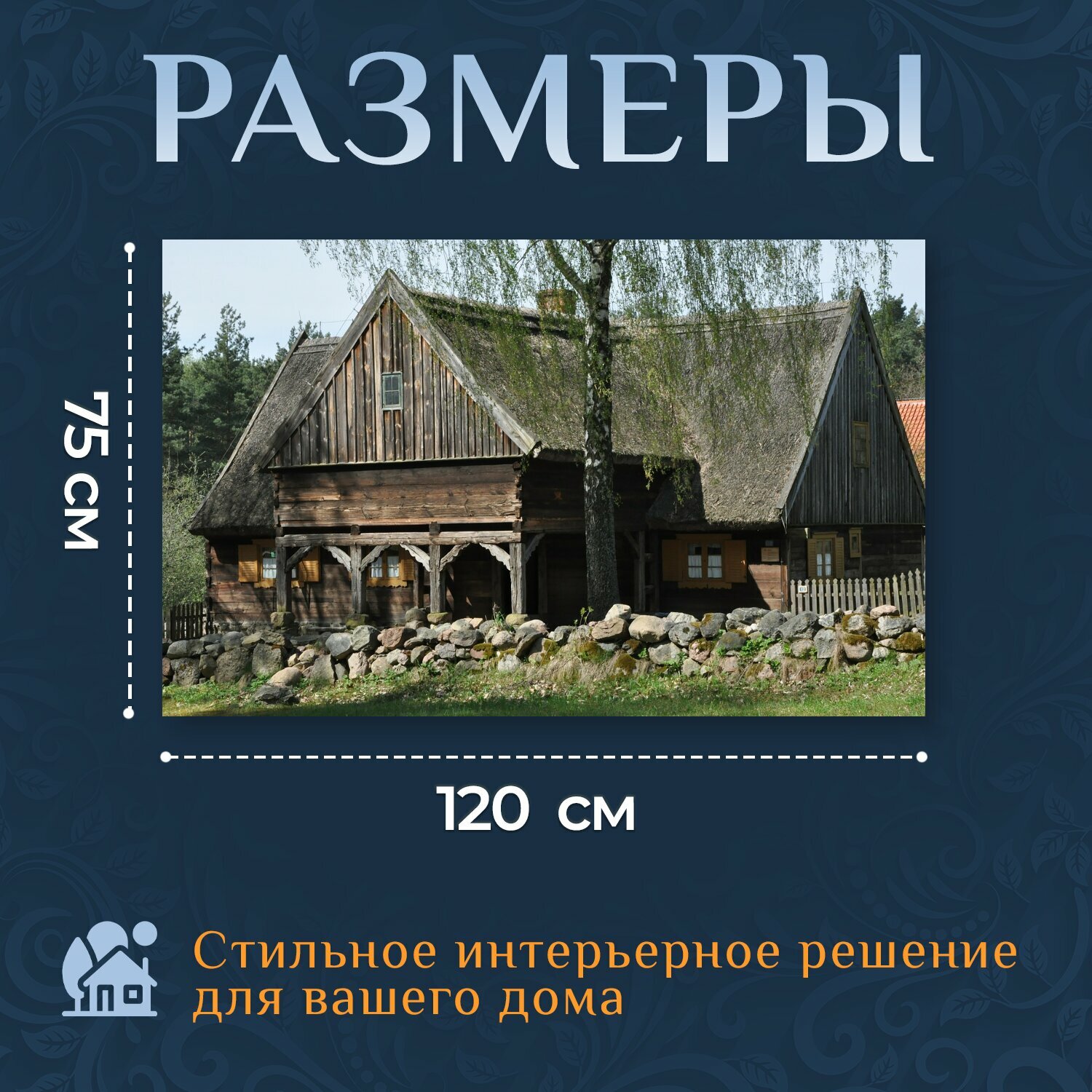 Картина на холсте "Коттедж, музей под открытым небом, деревня" на подрамнике 120х75 см. для интерьера информация:
