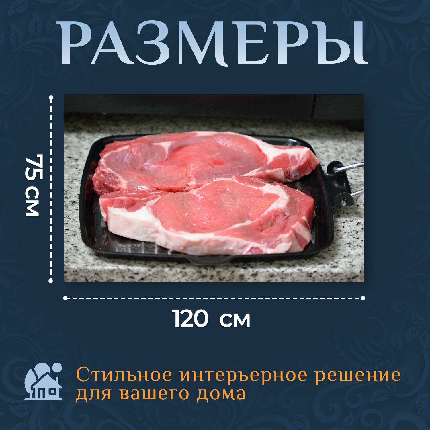 Картина на холсте "Филе, телятина, мясо" на подрамнике 120х75 см. для интерьера информация: