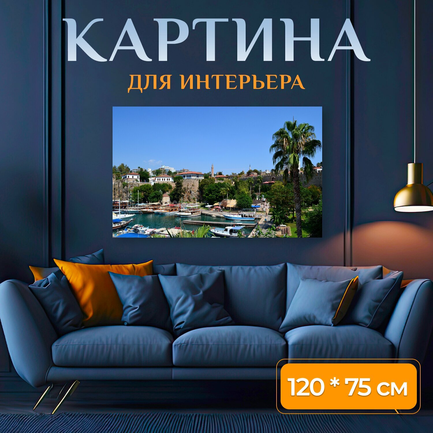 Картина на холсте "Пальма, бухта, море" на подрамнике 120х75 см. для интерьера информация: