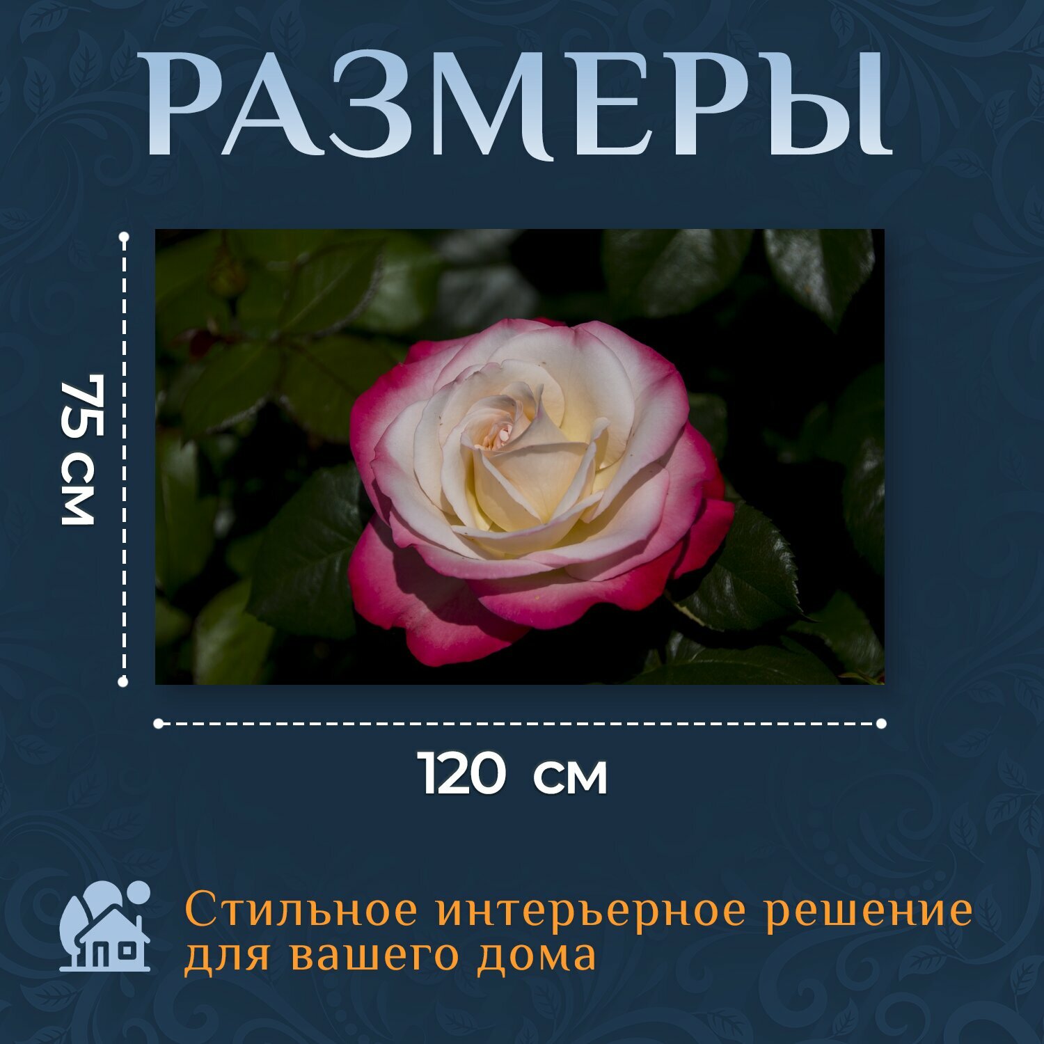 Картина на холсте "Роза, цветок, сад" на подрамнике 120х75 см. для интерьера информация: