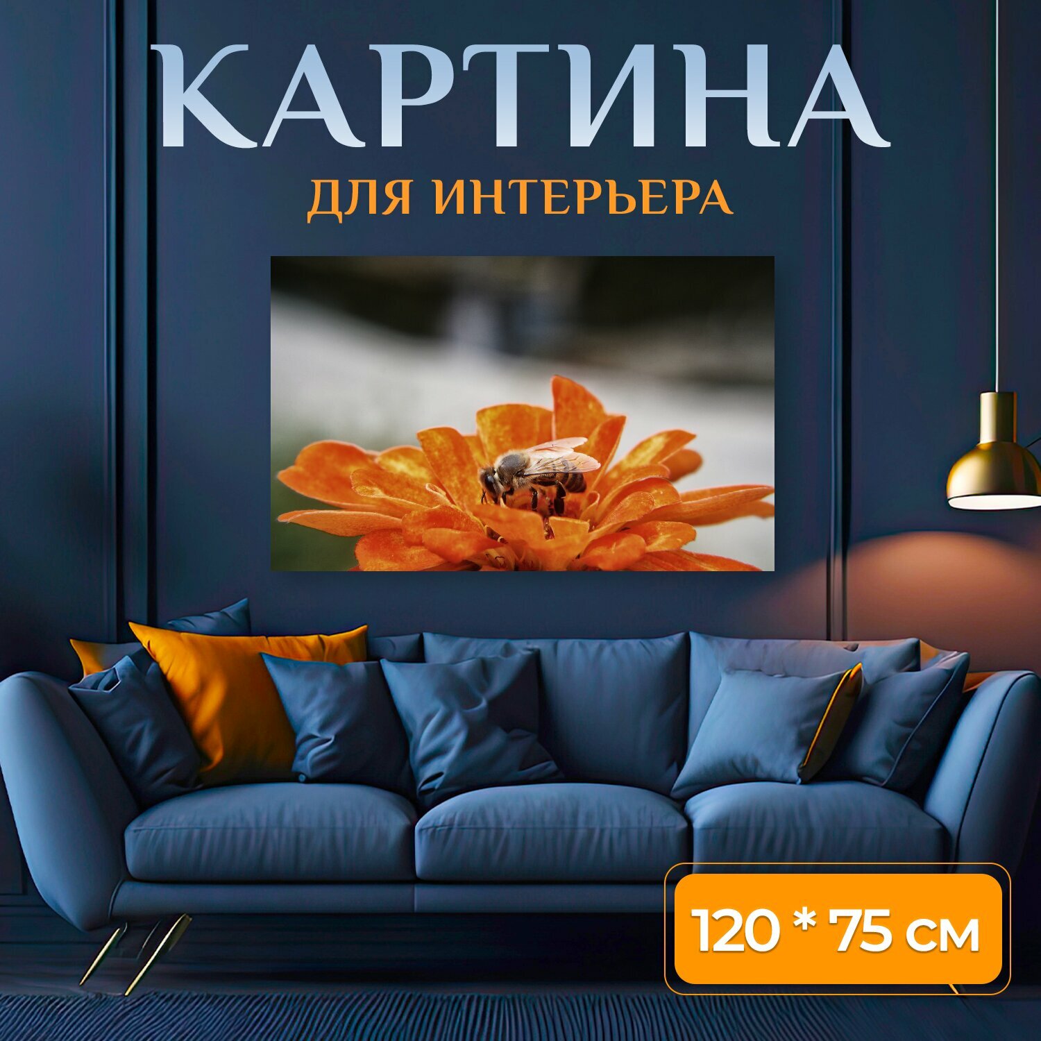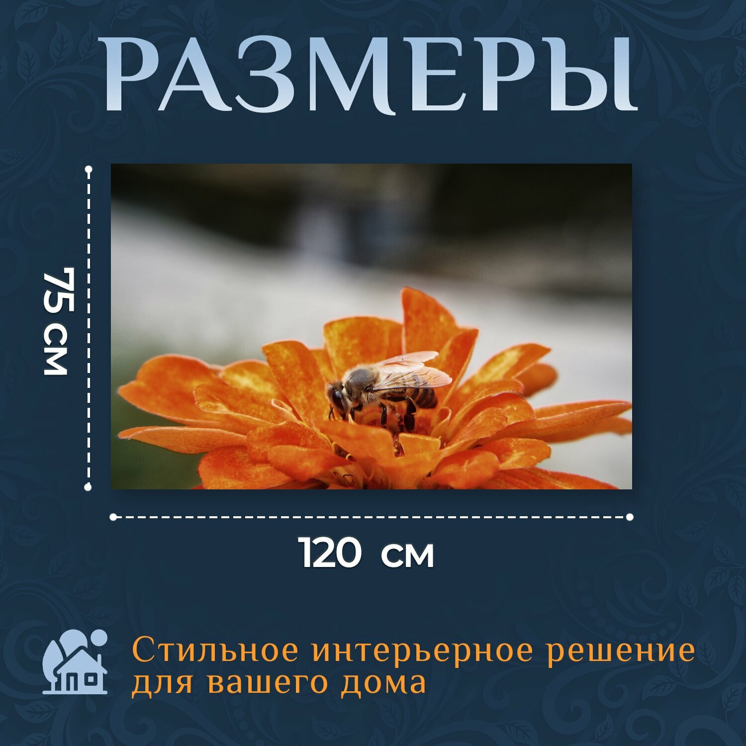 Картина на холсте "Пчела, опыление, цветы" на подрамнике 120х75 см. для интерьера информация: