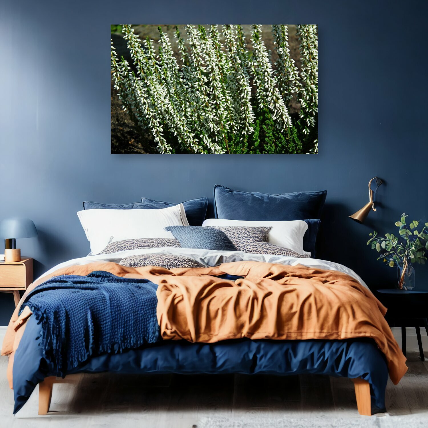 10 цен на Картина на холсте "Цветы, верески, белый" на подрамнике 120х75 см. для интерьера