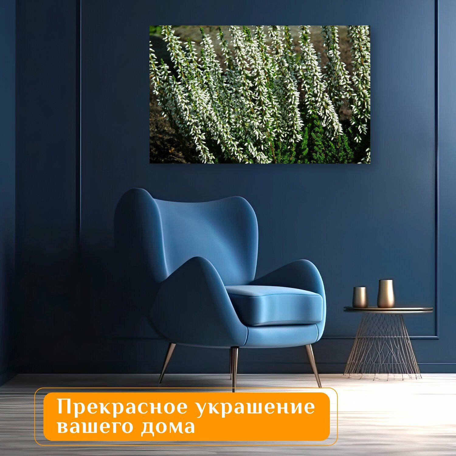 Отзывы на Картина на холсте "Цветы, верески, белый" на подрамнике 120х75 см. для интерьера