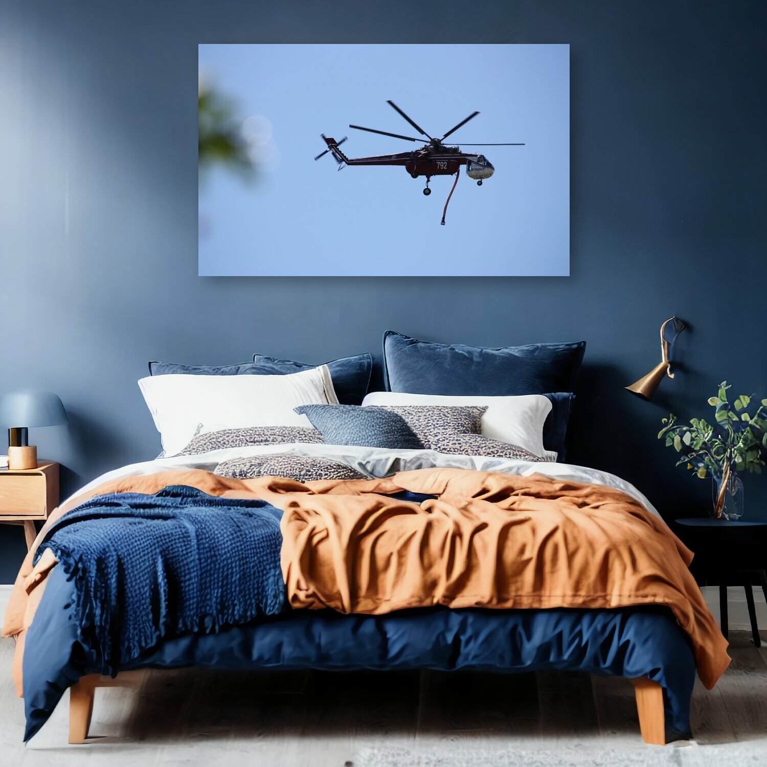 Картина на холсте "Вертолет, пожар, капля воды" на подрамнике 120х75 см. для интерьера информация: