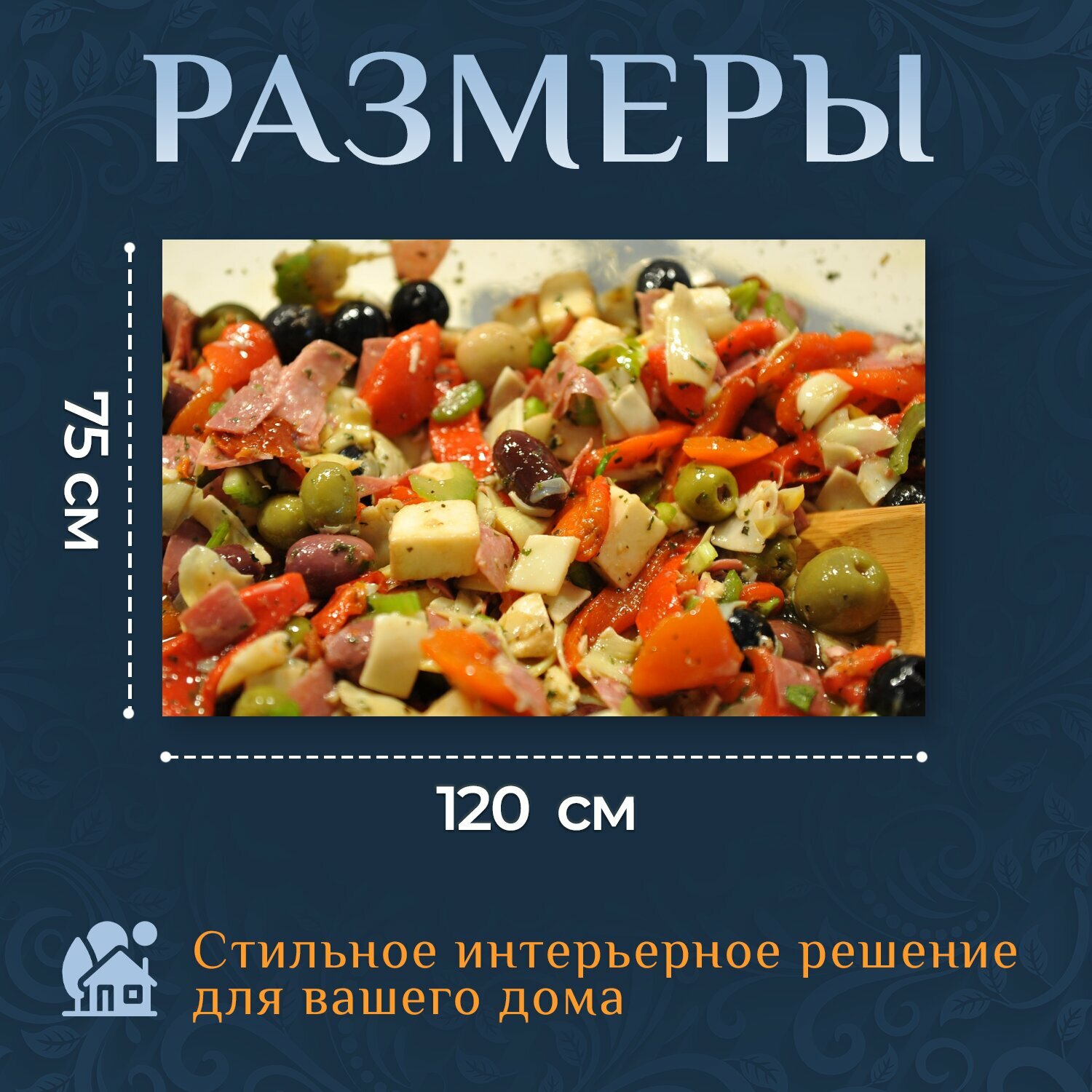 Отзывы на Картина на холсте "Еда, итальянский, закуска" на подрамнике 120х75 см. для интерьера