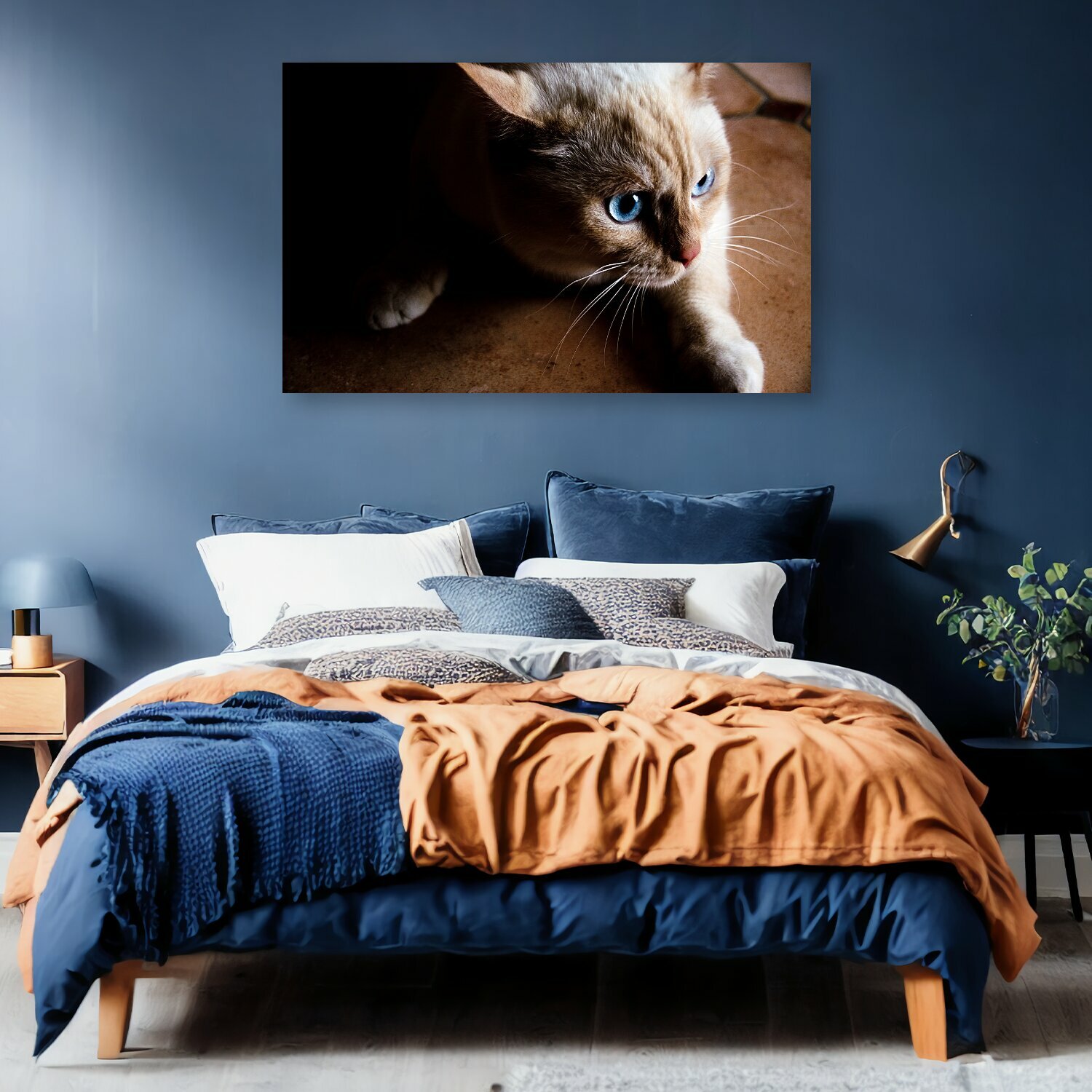 10 цен на Картина на холсте "Кот, белый, голубые глаза" на подрамнике 120х75 см. для интерьера