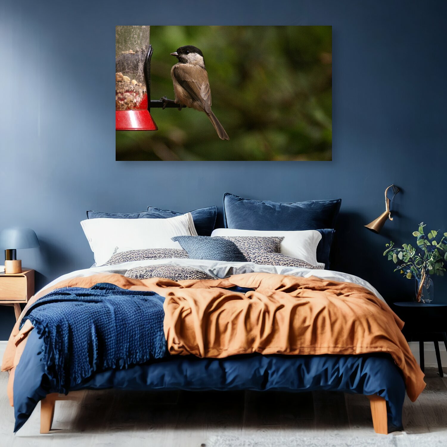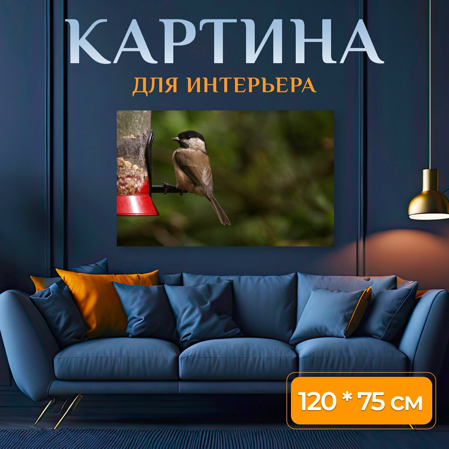 10 цен на Картина на холсте "Маленькая птичка, место кормления, птица" на подрамнике 120х75 см. для интерьера